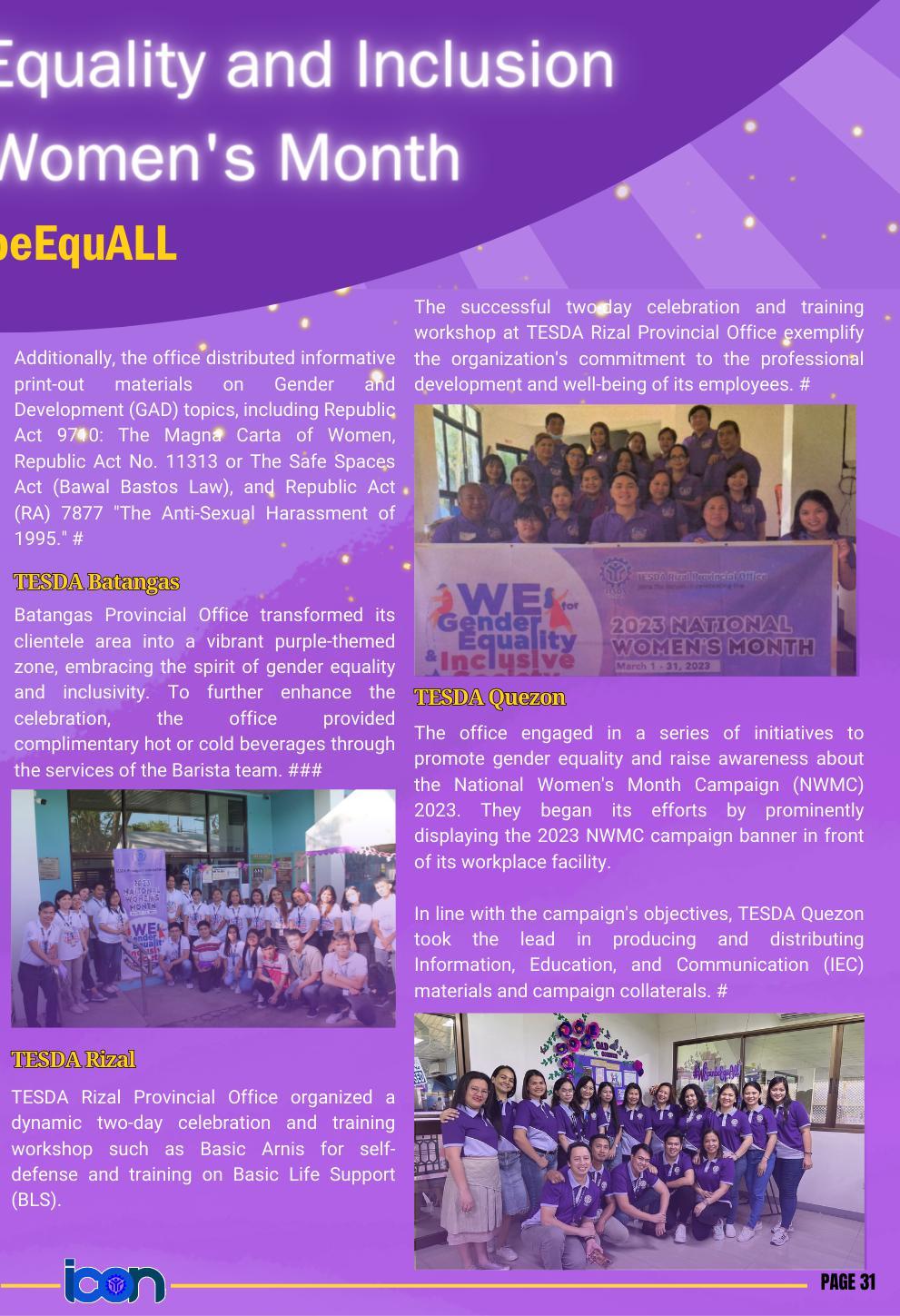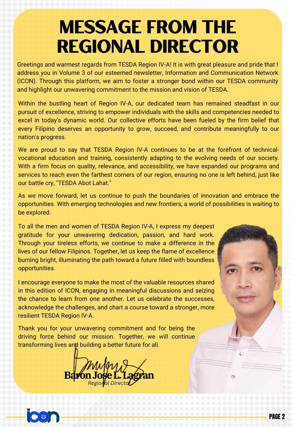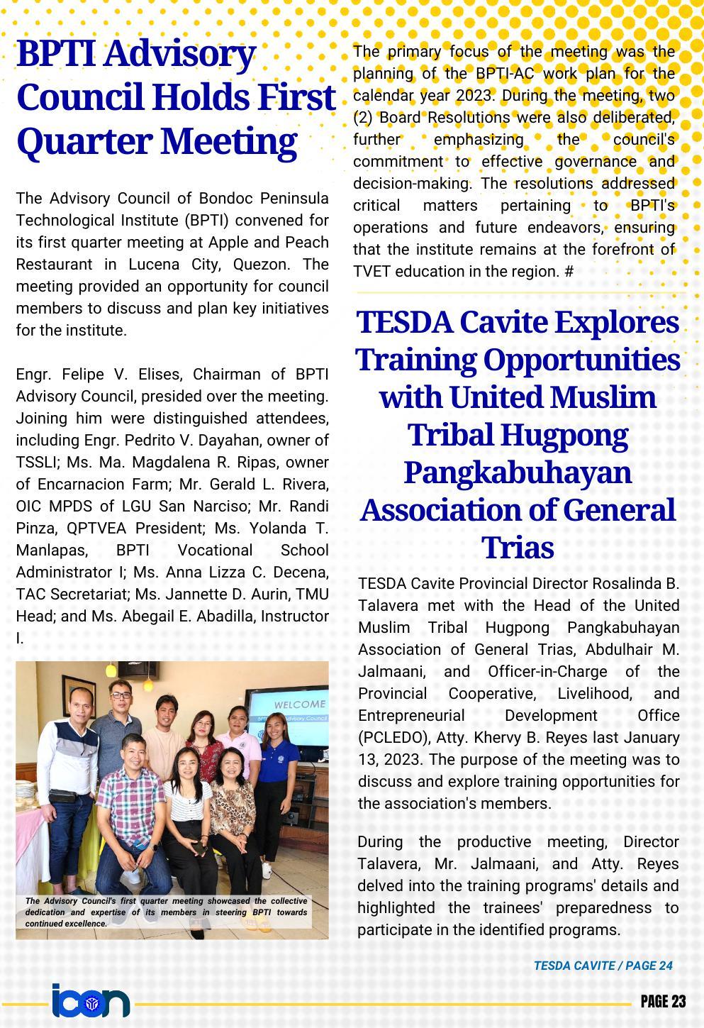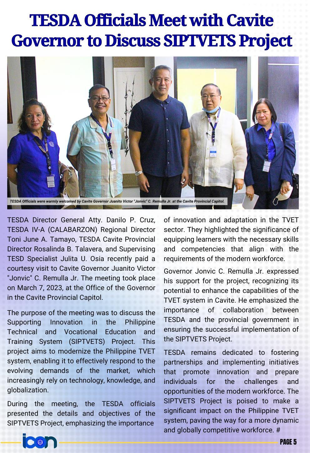 The first newsletter for the year 2023 is officially out! The Calabarzon Information and Communication (ICON) is the official newsletter of TESDA IV-A. Read to know the up-to-the-minute news and announcements on the TVET sector in the provinces of Cavite, Laguna, Batangas, Rizal, and Quezon.