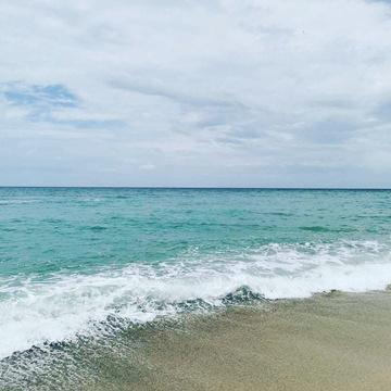 踏進沙灘的那刻我的步伐逐漸放慢,感受細沙隨著⾛