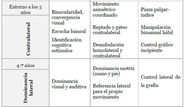 El siguiente cuatro concentra las fases de la lateralidad:
