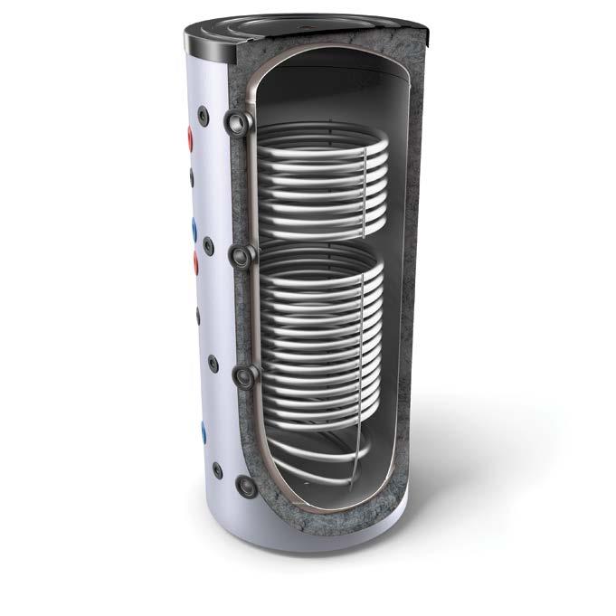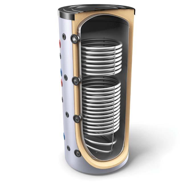 Rezervoare de apă caldă menajeră pentru sisteme cu pompă de căldură | cu un schimbător de căldură dublu de mare putere | de la 160 L la 500 L | cu două schimbătoare de căldură duble de mare putere | 200 L până la 500 L | cu două schimbătoare de căldură duble de mare putere | 800 L și 1000 L