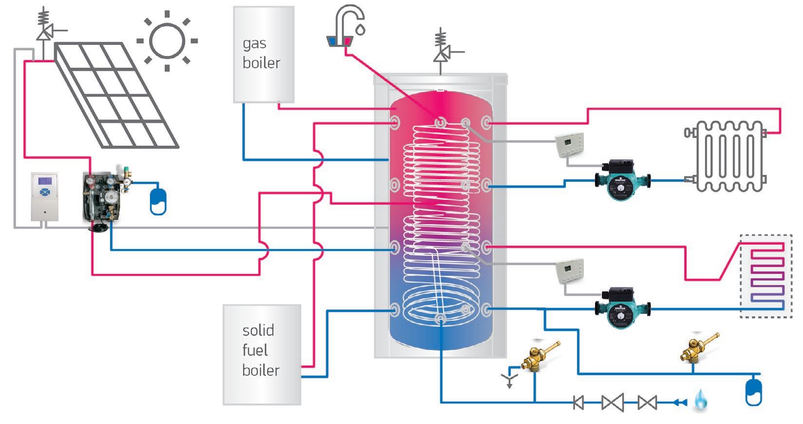 Rezervoare tampon cu două, unul și fără schimbătoare de căldură