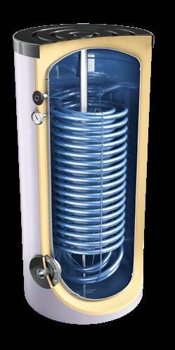 Intercambiadores de calor con amplias superficies para conexión a sistemas de bomba de calor o calderas de gas de condensación. Adecuado para funcionar con fuentes de calor de baja temperatura.