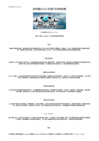 如何通过Zalo引流扩大市场份额,zalo营销,zalo获客推广,zalo加粉工具,zalo云推广,zalo营销_(www.vst.tw)_