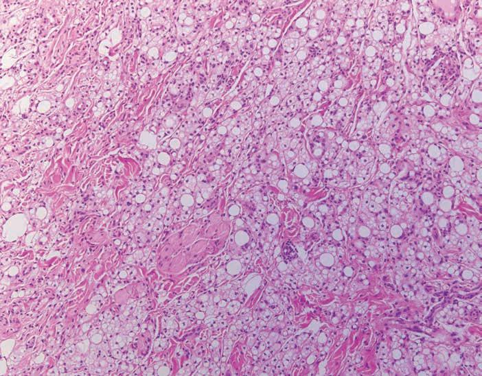 Figure 5. Sheets of macrophages proliferate and replace the minor salivary gland tissue.