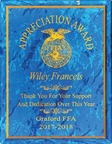 “Service is vital to the FFA because it allows members to be aware of other people's needs. Recognizing these needs grants people the opportunity to assist others rather than just helping themselves. Although sometimes you don't see the immediate result of your actions, it still leaves you with a desire to help more people.”