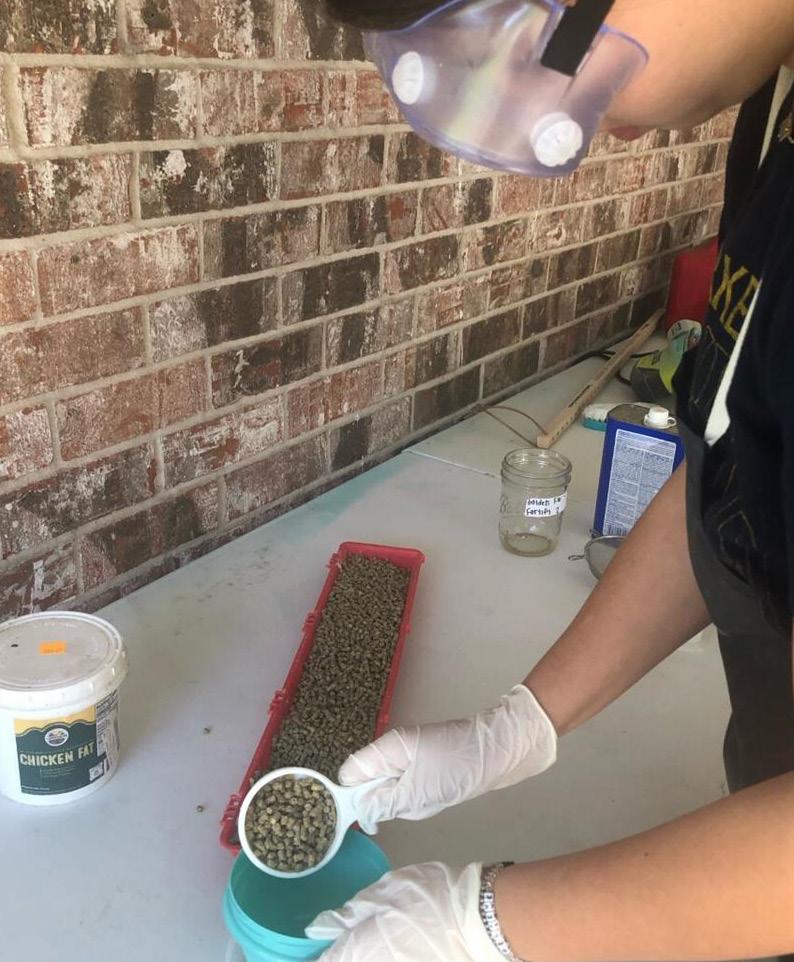 To conduct the experiment, Beck mixed various fat sources with poultry finishing feed and administered it to her broilers. She would take the