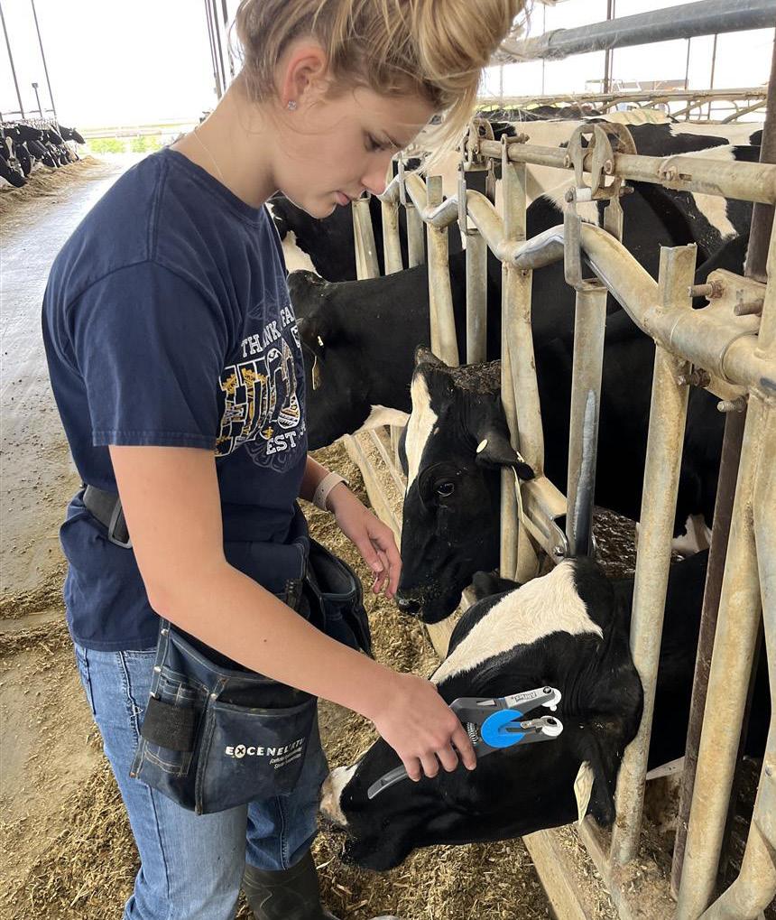 The Hico FFA member began as an apprentice and was tasked with handling ear tags and observing. As the years progressed, so did her responsibility. She is now in charge of ear tags and electronic identification (EID) for approximately 4,000 head at two dairy operations.