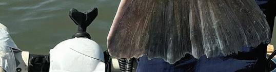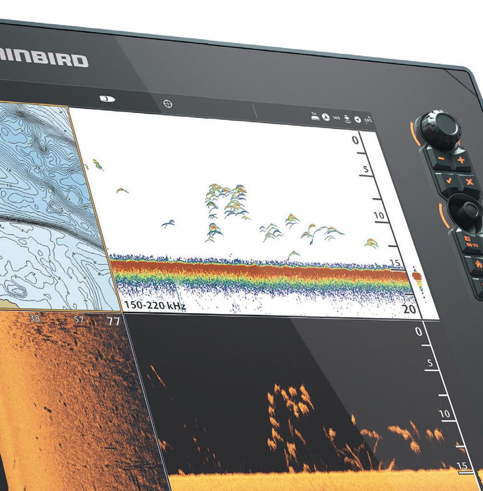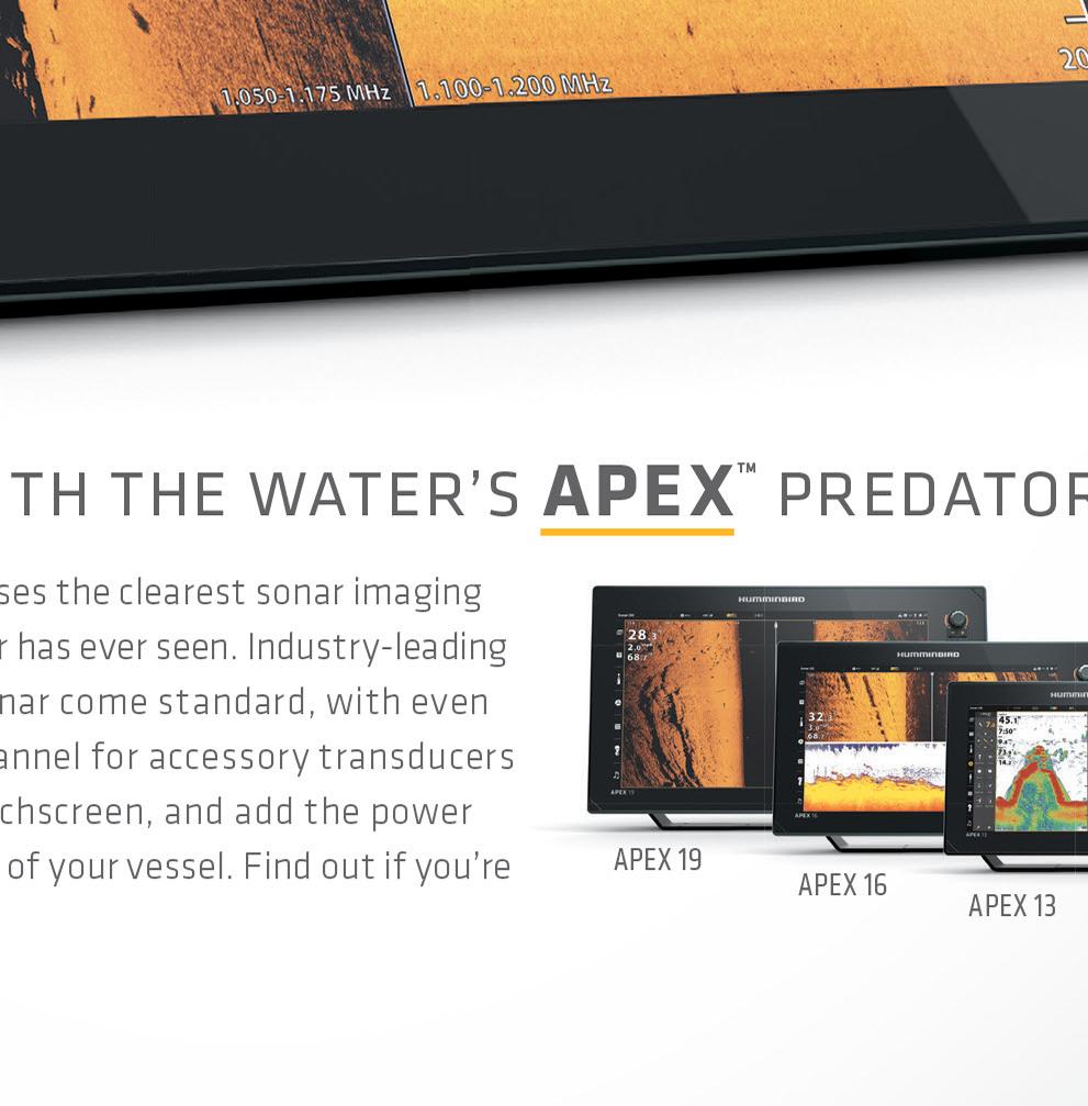 trolling motor and with the detailed Down and Side Imaging of the Humminbird Solix 12, we could see that the school had gone down into the wreckage. Using a Shimano Teramar 8’ Extra Heavy rod with a 6000 Spheros reel we threw out a live mullet rigged on a bo om weight down below. It didn’t take long for one of those ling to sni out that bait and we hooked up. It is important to have a rod with some backbone and proper leader line to e ectively pull them out of the structure, especially since cobia can reach upwards of 100 lbs. Fighting these powerful predators in deeper water is a fun and rewarding ba le.
