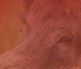 Whatever was in the bushes grunting was black with grizzled grey.