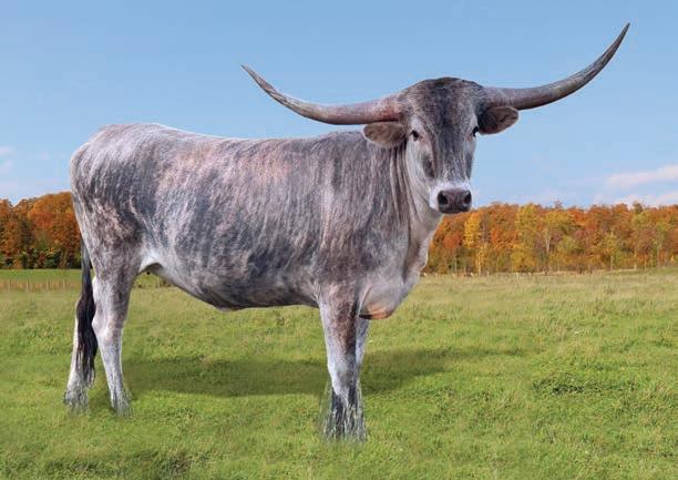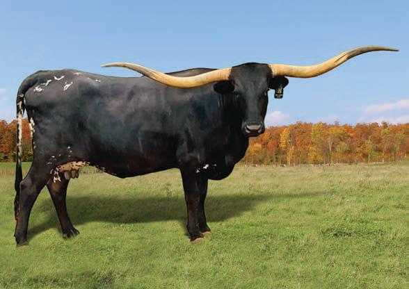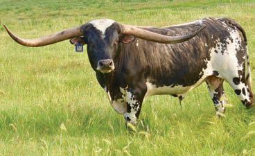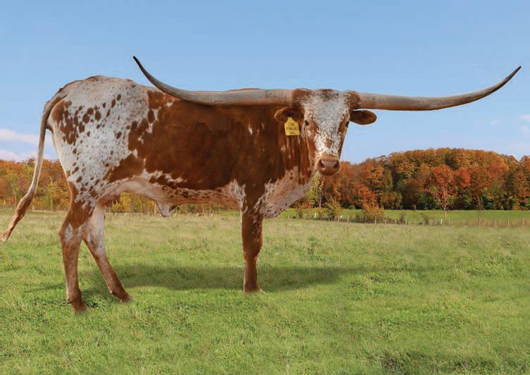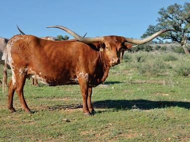 COMMENTS: OCV’d. This beautiful Trued Up daughter comes from some of our best foundation genetics. Her dam is mid 80’s and she has a daughter pushing 100” TTT. Her granddam is near 90”. Her sire is mid-90’s and has a conformation second to none. She is a full-bodied, sweet, easy going heifer, with g d eet he t her r t hei er calf and is bred back to M7 Grate Iron, which should be a great cross. She measures over 63” TTT with a beautiful twist coming on. She is a pleasure to be around. bullcreeklonghorns.com