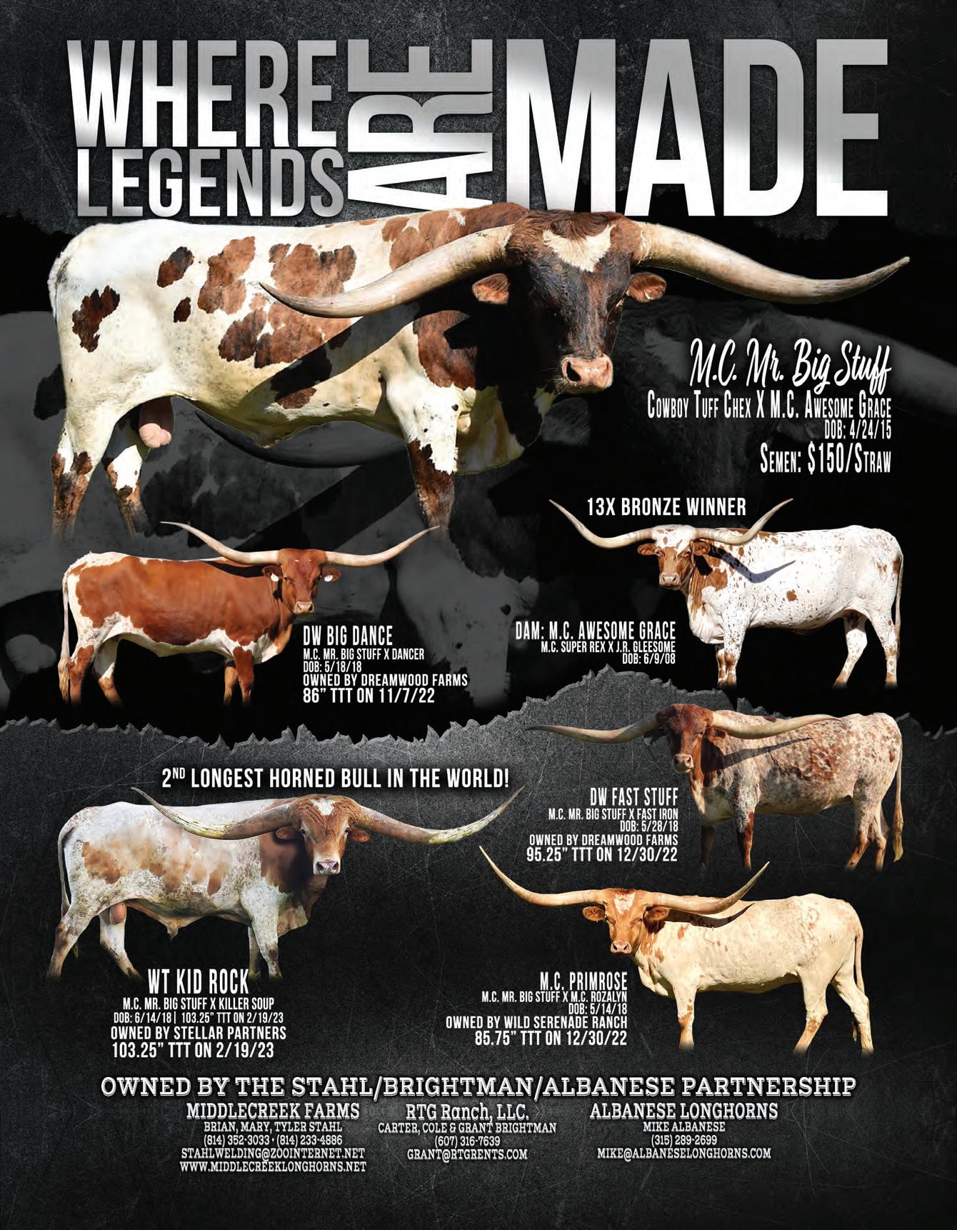 SEPTEMBER 15-16 • Legends Longhorn Sale & Futurity, Stephens County Fairgrounds, Duncan, OK Contact Justin Rombeck (816) 536-1083 or legendslonghornsale@gmail.com
