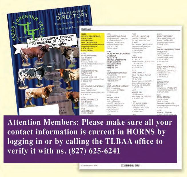 TEXAS LONGHORN TRAILS April 2023 | 55 WEST TEXAS CANADA ALBERTA UTAH TENNESSEE Email myra@tlbaa.org to get your listing added!