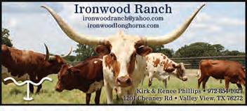 Buster & Thalia Butler Jennings, OK 936-577-6129 buster@butlertxlonghorns.com www.butlertxlonghorns.com