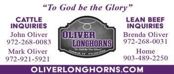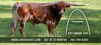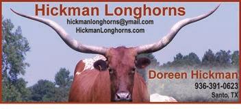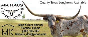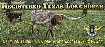 BEAVER CREEK LONGHORNS - Est. 1995. Conformation, color, disposition, pedigree and HORNS. Reasonable prices. Carole Muchmore, Ponca City, OK. 580 765-9961 (calls only) or email cmuchmor@ poncacity.net. www.beavercreeklonghorns.com