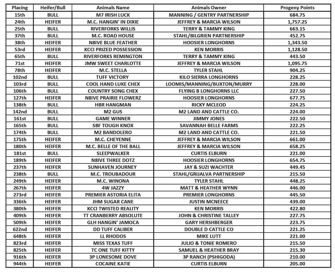 National Longhorn Futurity Race Meet the ranches that took home Grand Champion, Top Sire and Dam and the top 25 bulls and females.