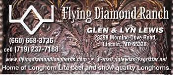 BEAVER CREEK LONGHORNS - Est. 1995. Conformation, color, disposition, pedigree and HORNS. Reasonable prices. Carole Muchmore, Ponca City, OK. 580 765-9961 (calls only) or email cmuchmor@ poncacity.net. www.beavercreeklonghorns.com