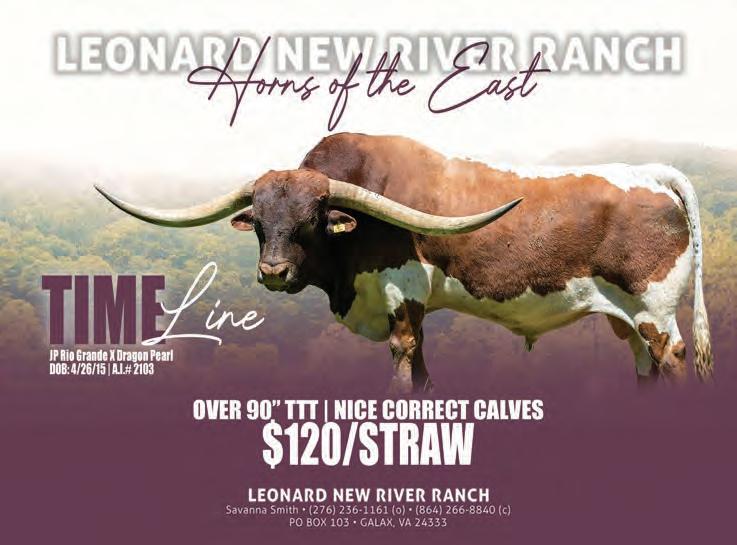 April 11-13, 2025 • 2025 ETLA Corsicana Classic, Navarro County Expo Center, Corsicana, TX Entry Deadline 4/1/25 Contact Debroah Burkham 214-616-2549 dburk5@ hotmail.com Qualifying Haltered, Trophy Steers, Youth, Youth Miniatures, Miniatures