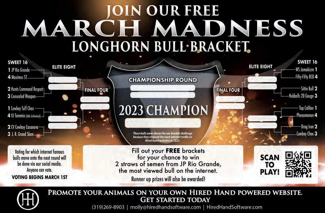 MARCH 17-18 • Texas Longhorn Legacy Sale, Grapevine, TX. Chase Vasut (512) 917-8654