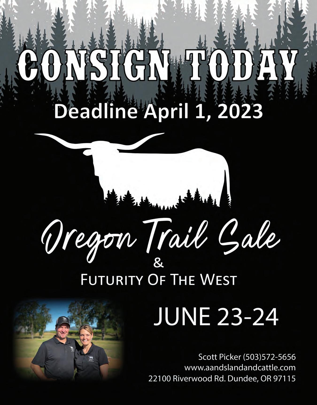 MARCH 24 - 26 • OTLA Spring Shoot-Out, Payne County Expo Center, Stillwater. TX. Entry Deadline: March 6, 2023. Contact Walker Hance walker32flu@yahoo.com, (918) 808-6268 or David Edwards dledwards. texaslonghorncattle@gmail.com, (918) 557-0364. Qualifying Haltered, NonHaltered, Youth, Youth Points Only & Trophy Steers.