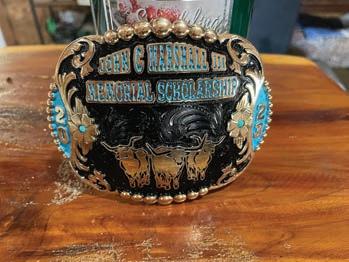 HOTLA presented a buckle to Gentri Phillips of Valley Springs, TX. She was the first John C Marshall III Memorial Scholarship recipient. Phillips is now enrolled at Texas A&M as a freshman where she will pursue her long-time interest in agriculture.