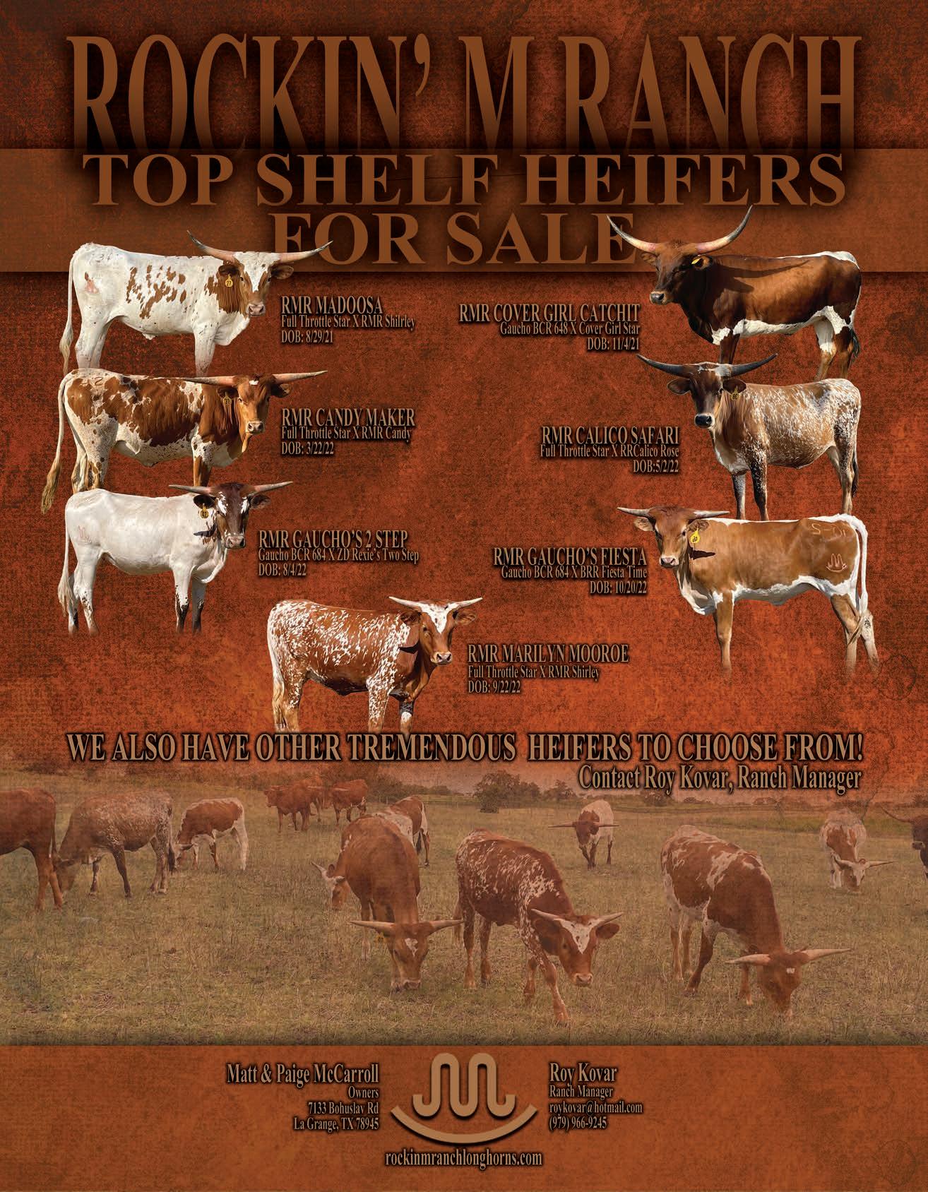 SEPTEMBER 29th • Breeder Spotlight Texas Longhorn Heifer Sale El Dorado, KS. Contact Scott Farber crossfirelonghorns@gmail.com (316) 706-9400 or Randy Jones (316) 323-2575