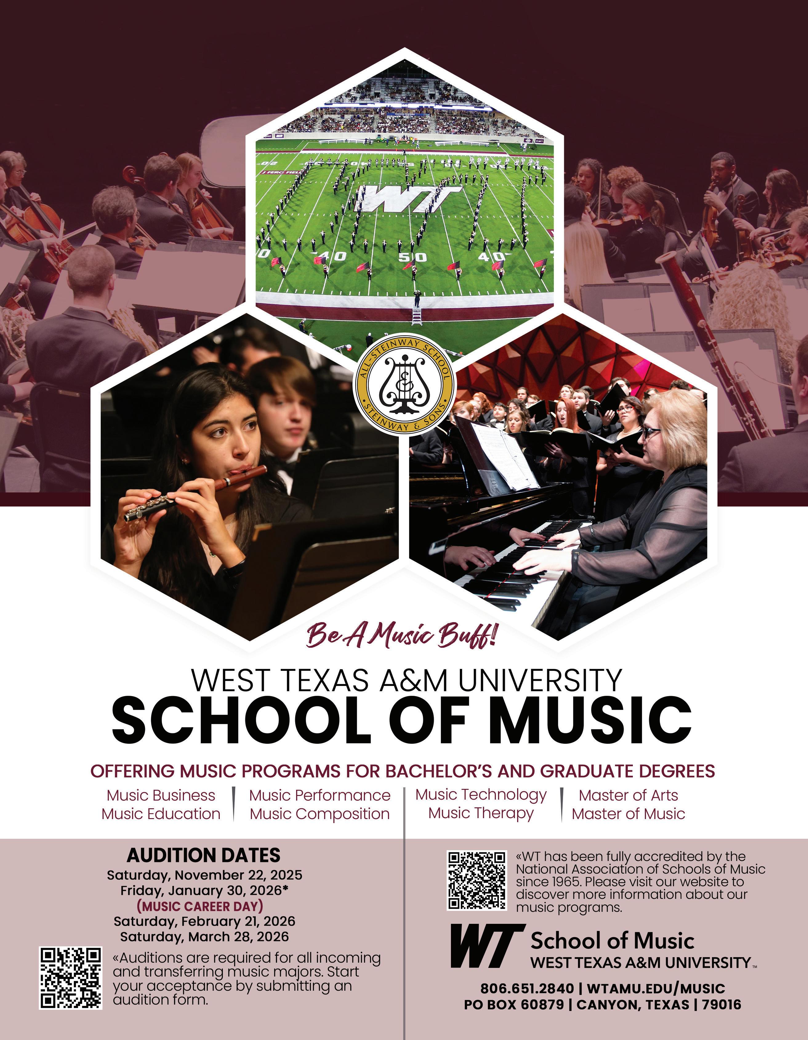 The TMEA News keeps you informed about changes to the 2026 Clinic/Convention schedule and includes notes of gratitude to everyone who supports TMEA’s mission of advancing highquality music education in Texas. Look for information about a new location for one of our Music Showcase performance areas.