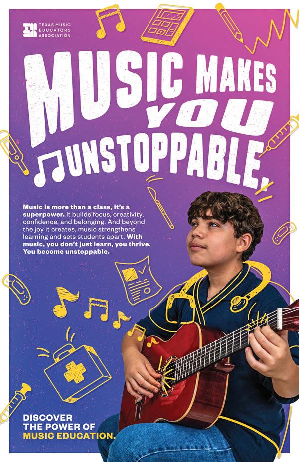 We’re excited to share a new set of advocacy resources created specifically for elementary and middle school classrooms. These materials are the culmination of the work TMEA contracted Lopez Negrete Communications, a PR firm in Houston, to conduct. The TMEA News installment on page 4 of the October issue offers more about the findings of the market research, which is the foundation for these materials. That issue is available online at www.tmea.org/october2025.