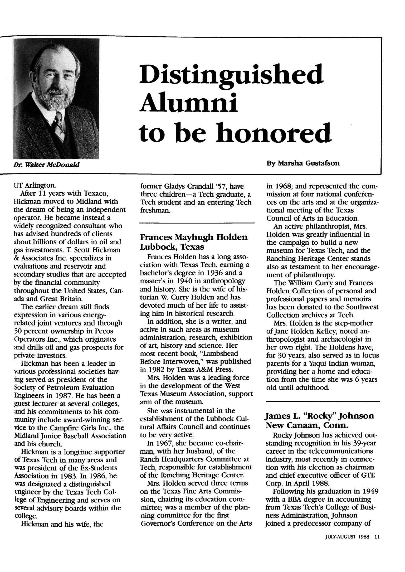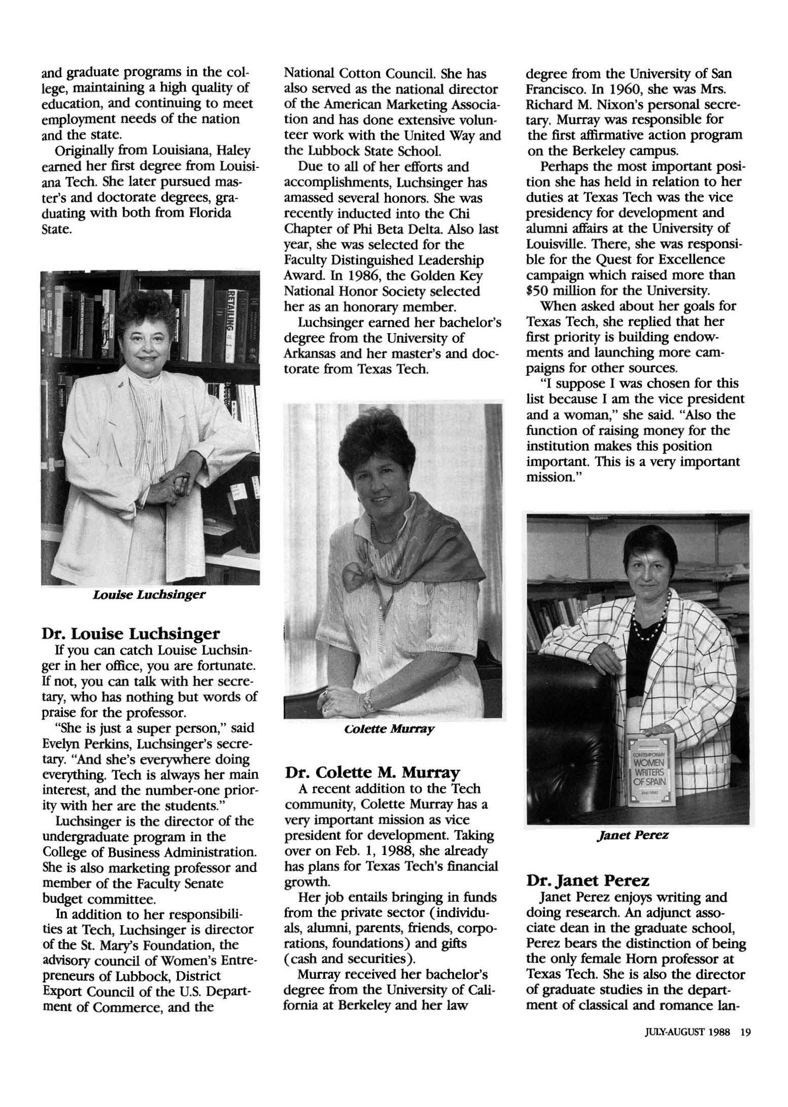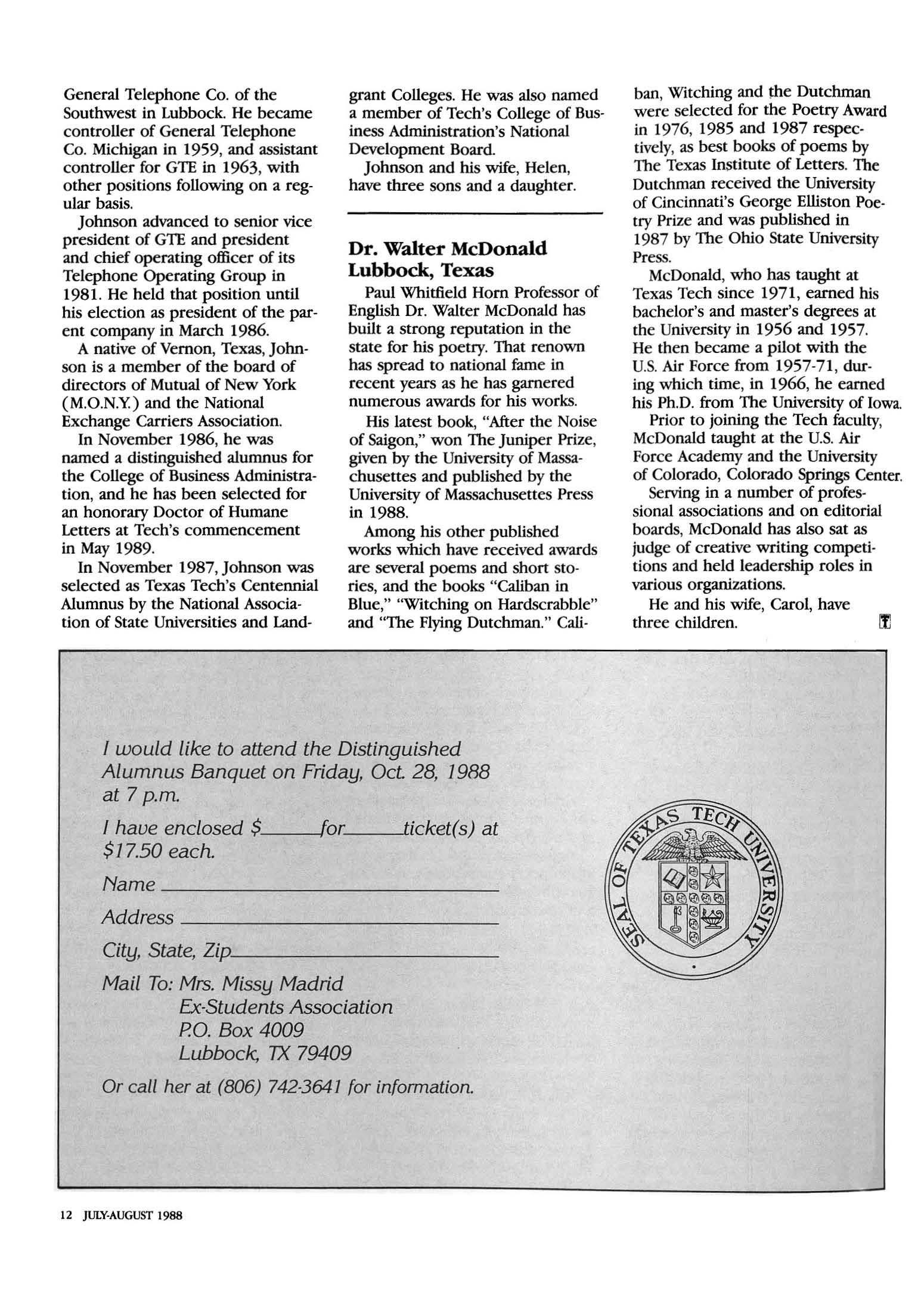 Texas Tech Ex-Students Association July-August 1988