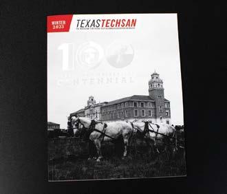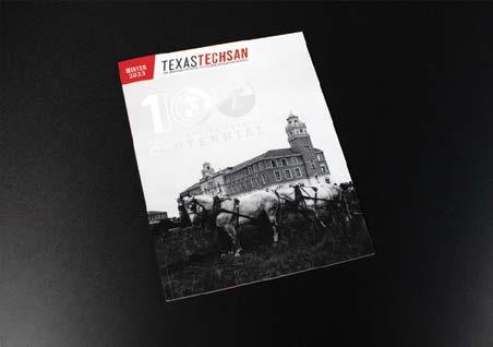 Texas Techsan is the official publication of the Texas Tech Alumni Association and Texas Tech University. Texas Techsan (USPS #021-676) is published quarterly and mailed to Texas Tech Alumni Association members. Editorial and advertising offices: McKenzie-Merket Alumni Center, 17th & University/P.O. Box 45001, Lubbock, TX 79409-5001. Telephone (806) 742-3641; fax (806) 742-0283; e-mail jean.ann.cantore@ttu.edu. Periodical postage paid at Lubbock,Texas, and additional offices. Send alumni news information to jennifer.ritz@ttu.edu. Send news for Techsan Memorial obituaries to jean.ann.cantore@ttu.edu. POSTMASTER: Send address changes to Texas Techsan Magazine, P.O. Box 45001, Lubbock, TX 79409-5001 or by e-mail to ia.bioupdate@ttu.edu.