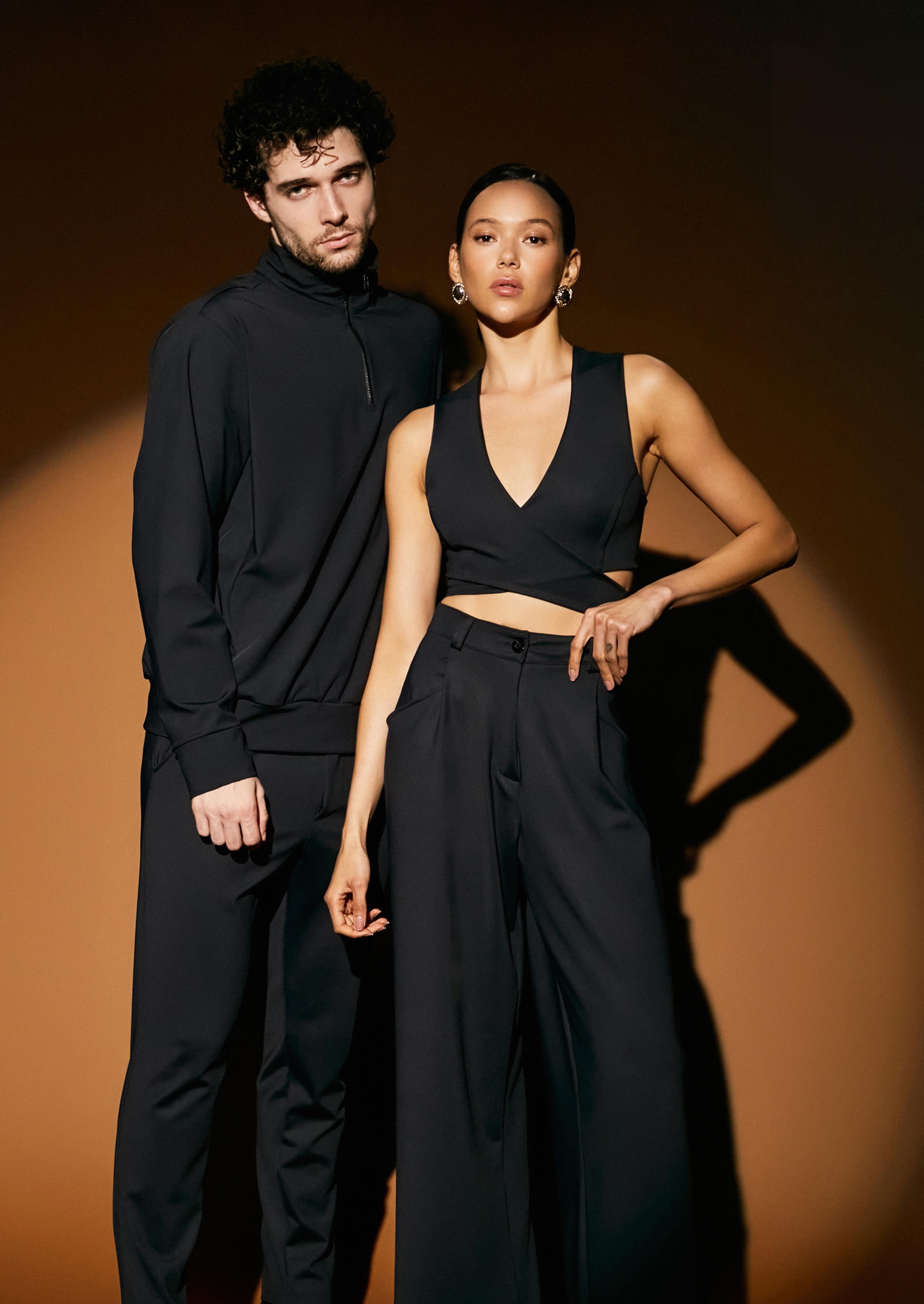 As peças de alfaiataria ganham uma nova vida com malhas de poliamida e elastano, onde o conforto se encontra com a praticidade, garantindo um visual moderno, conforto térmico e livre de amassados.