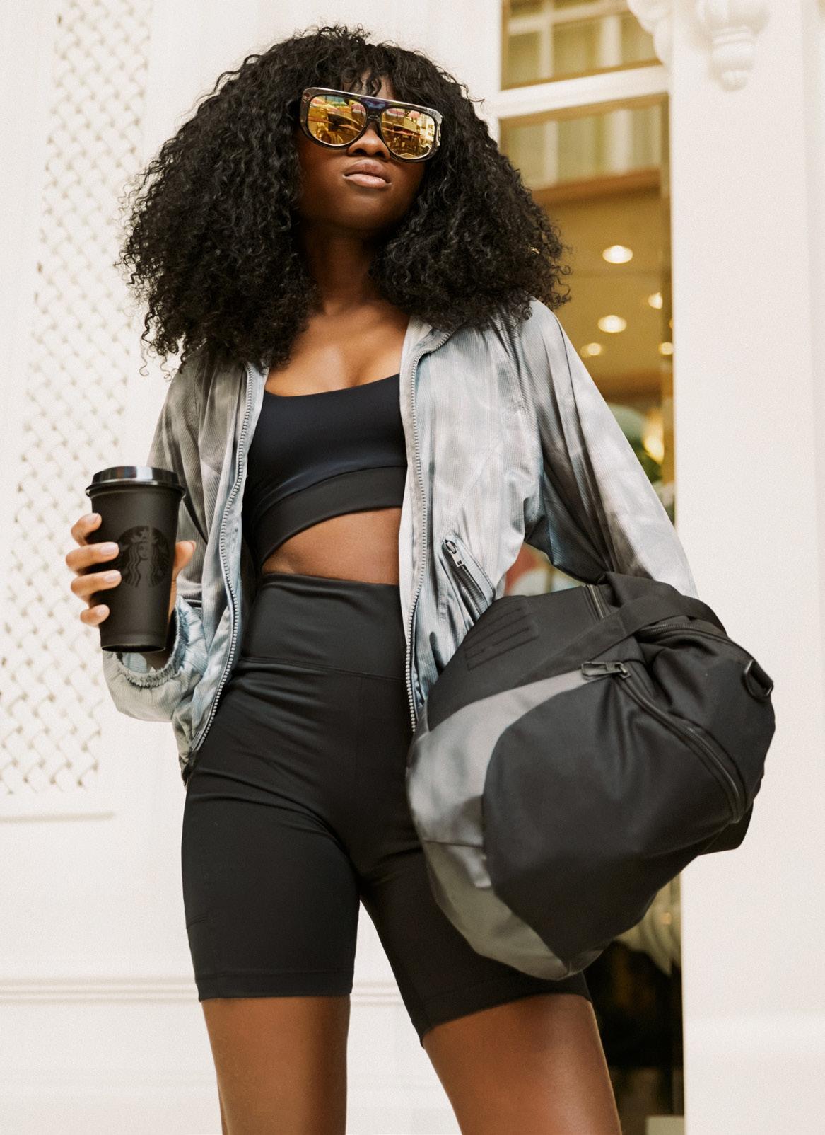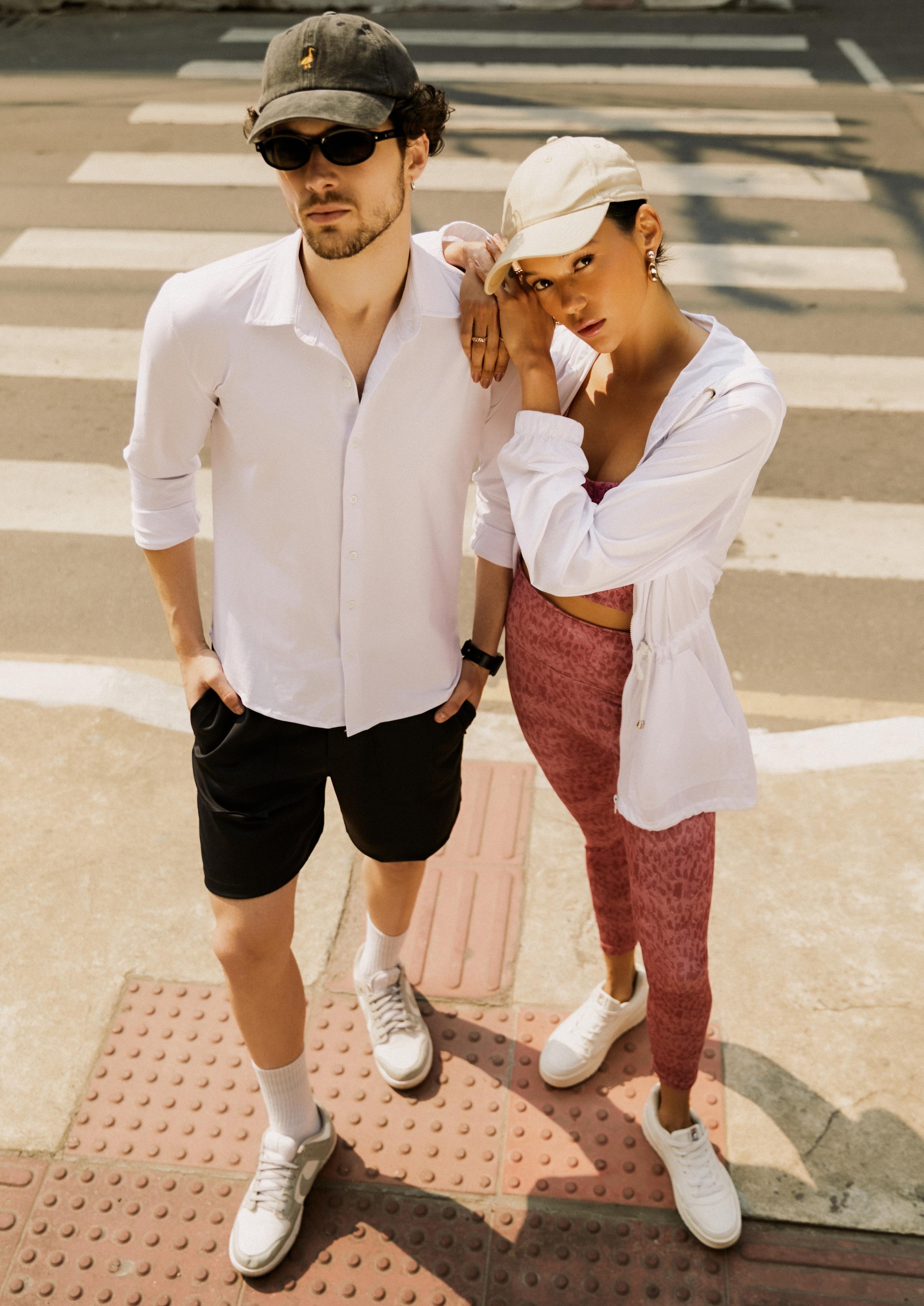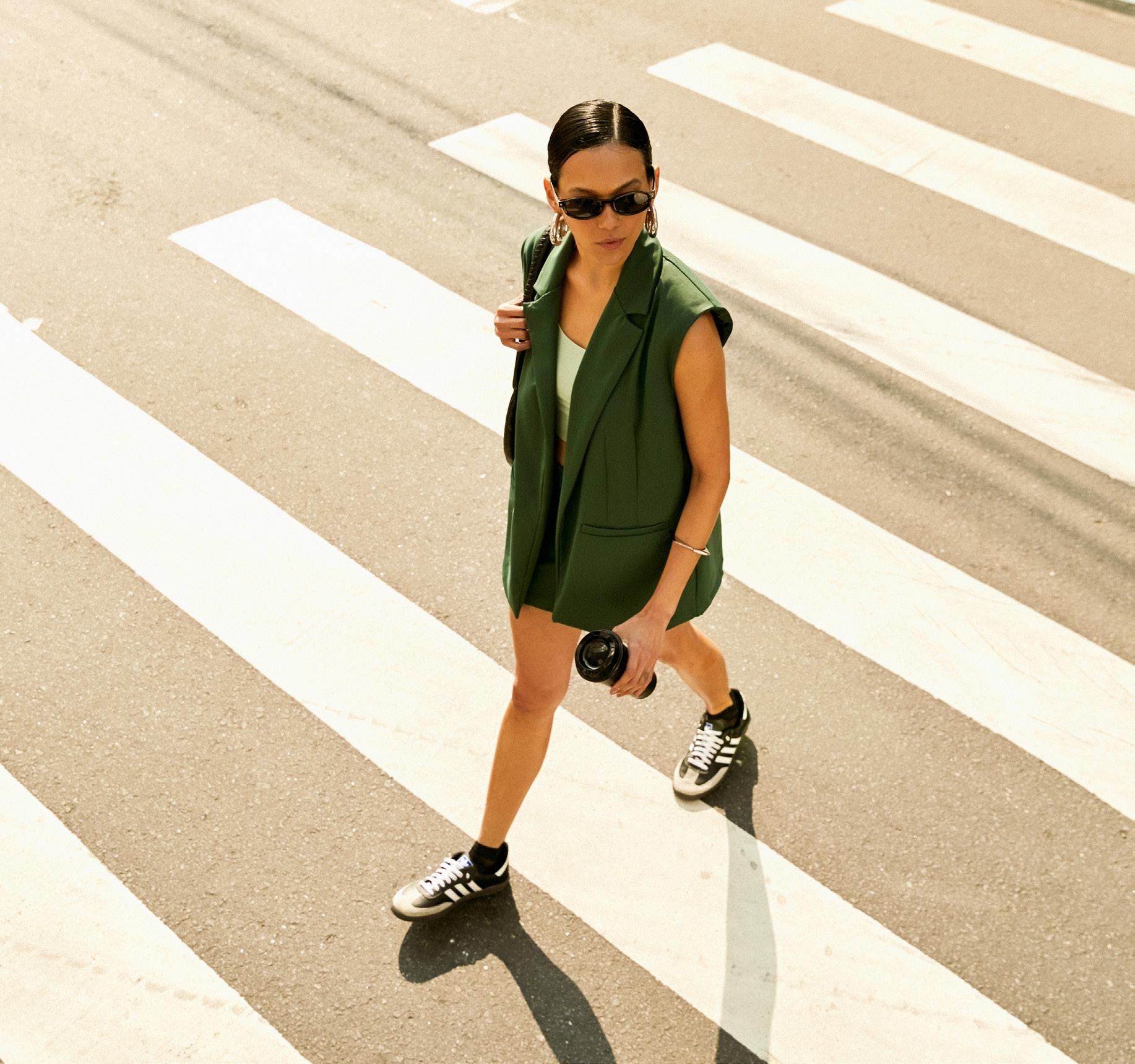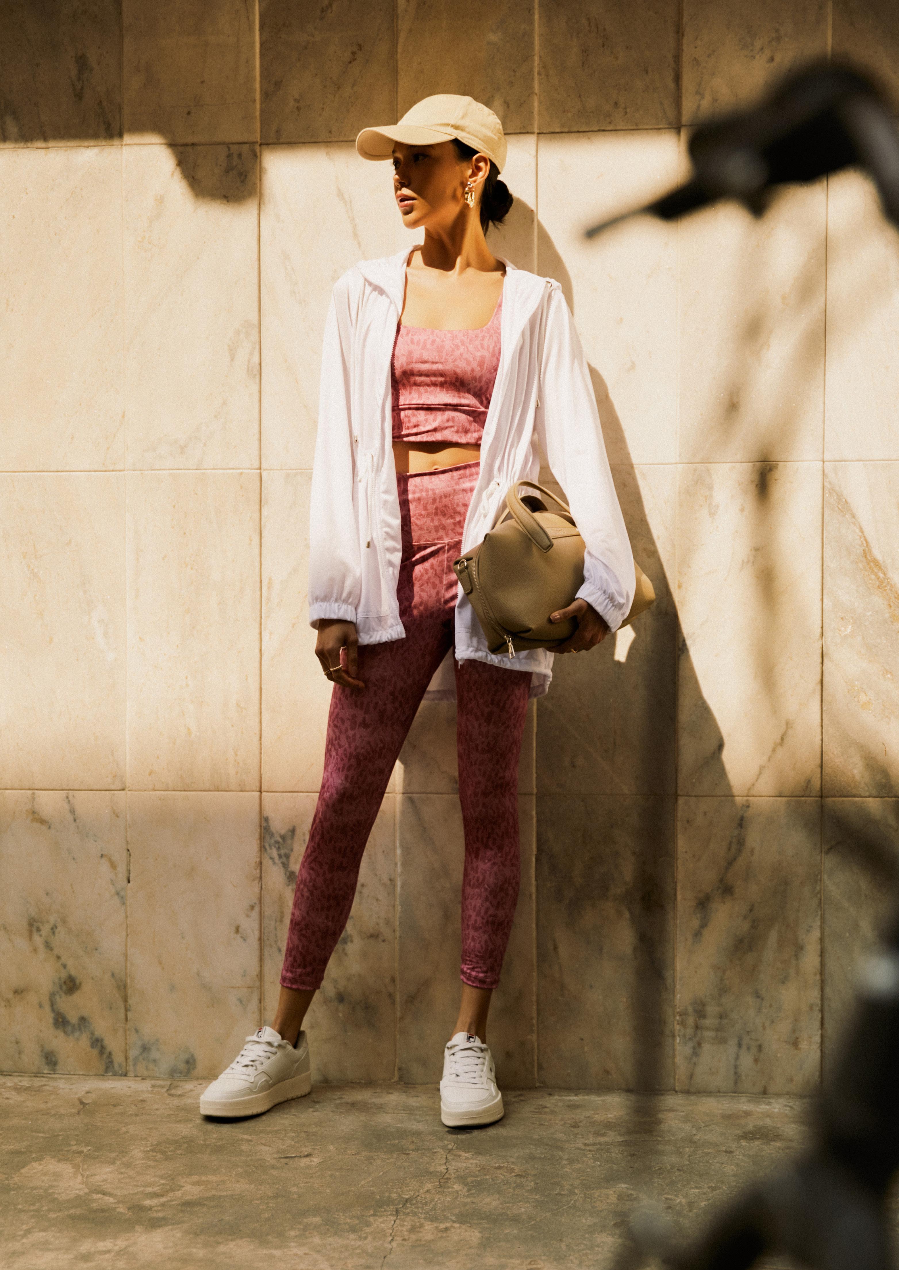 Geometric lines connect the sports and casual worlds, creating a versatile style that can be adapted to different occasions.