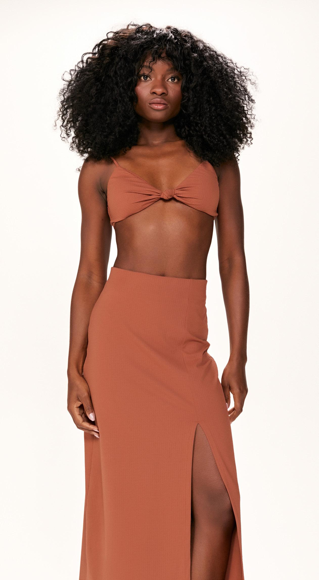 Poliamida de origen vegetal y fuente renovable, es fluida y suave, proporcionando comodidad y suavidad al llevarla puesta.