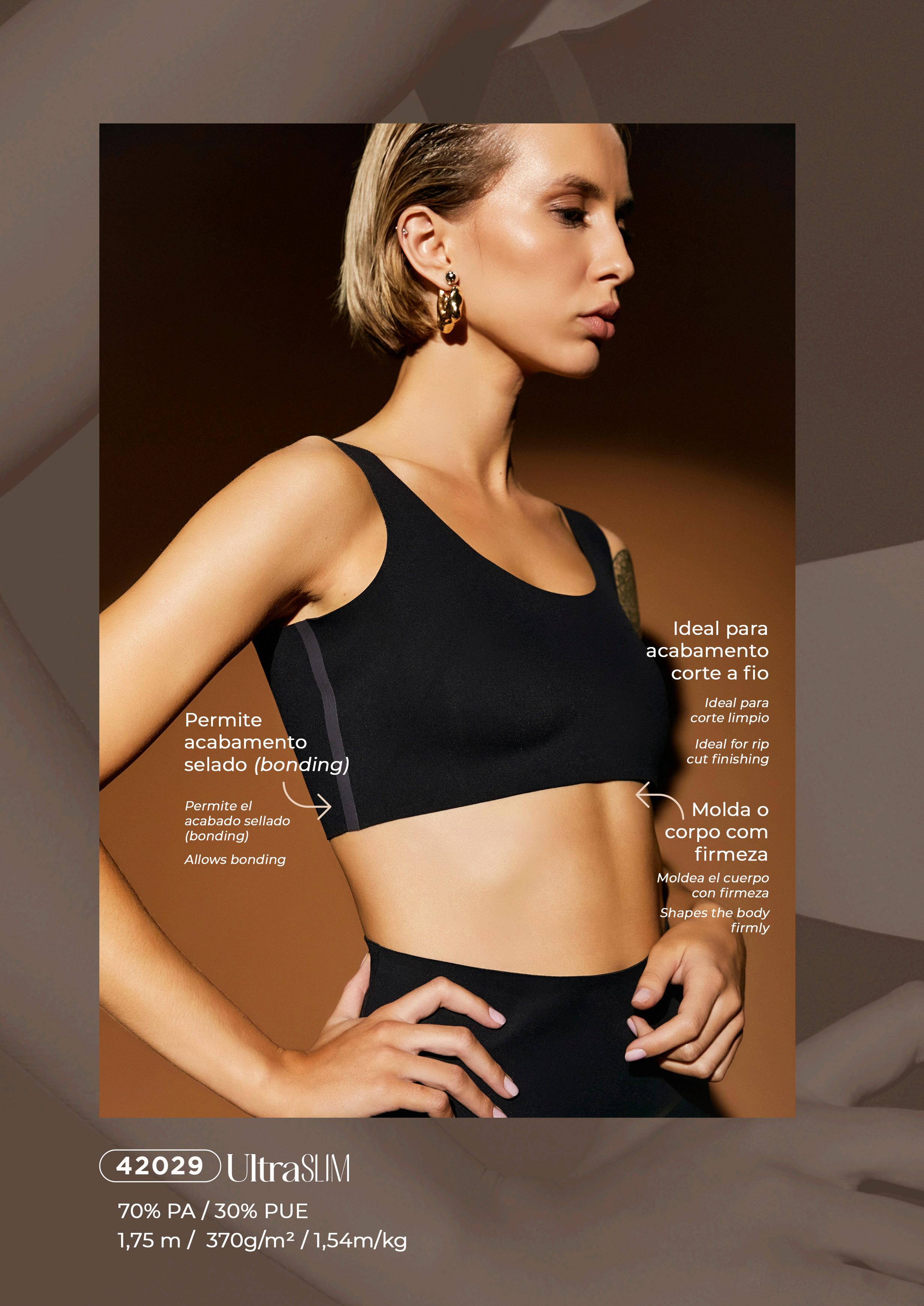 Tecnologia Bielastico, confere poder de elasticidade bidimensional (4-way stretch) que permite a criação de modelagens que se adequam perfeitamente a diferentes tipos de corpos, fazendo com que o mesmo tamanho se adapte com conforto aos diferentes biotipos corporais, tanto feminino quanto masculino.