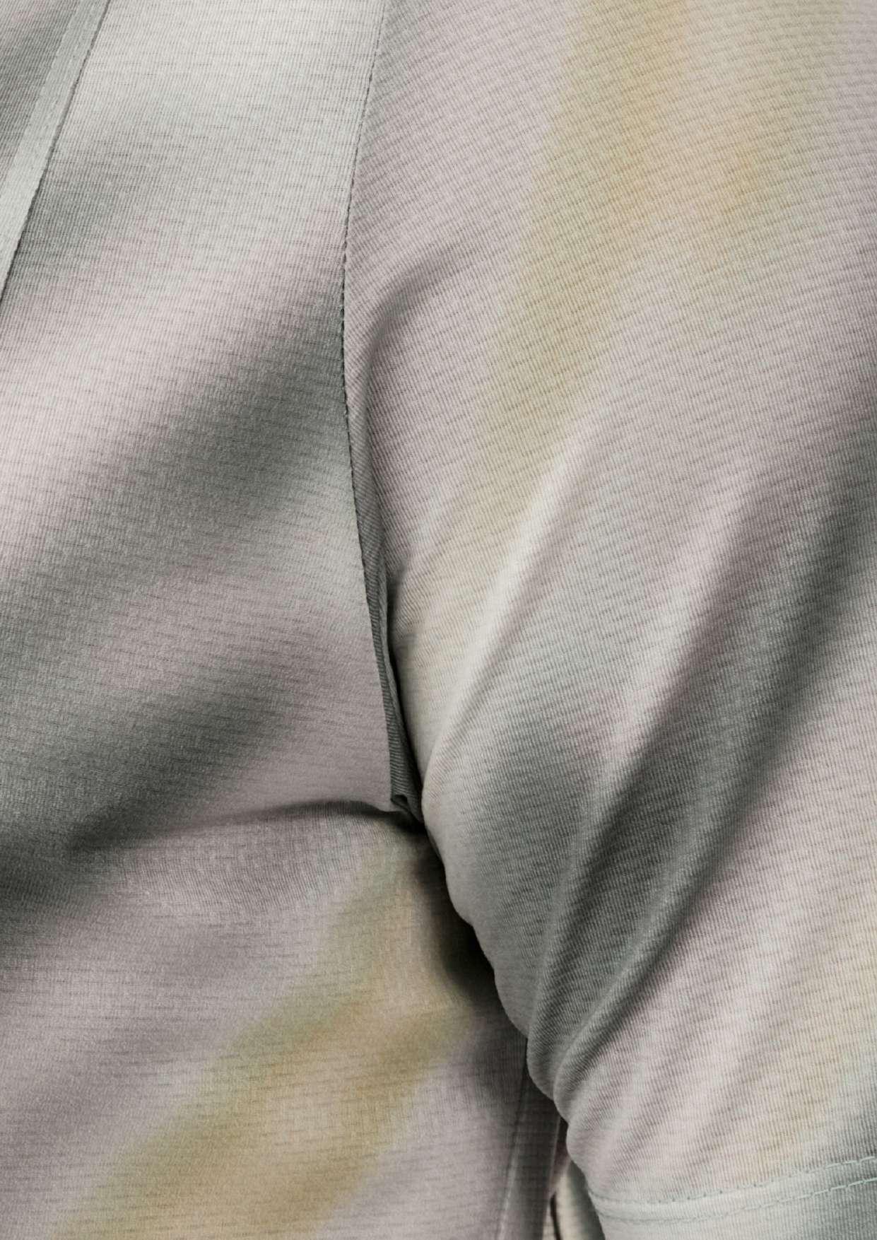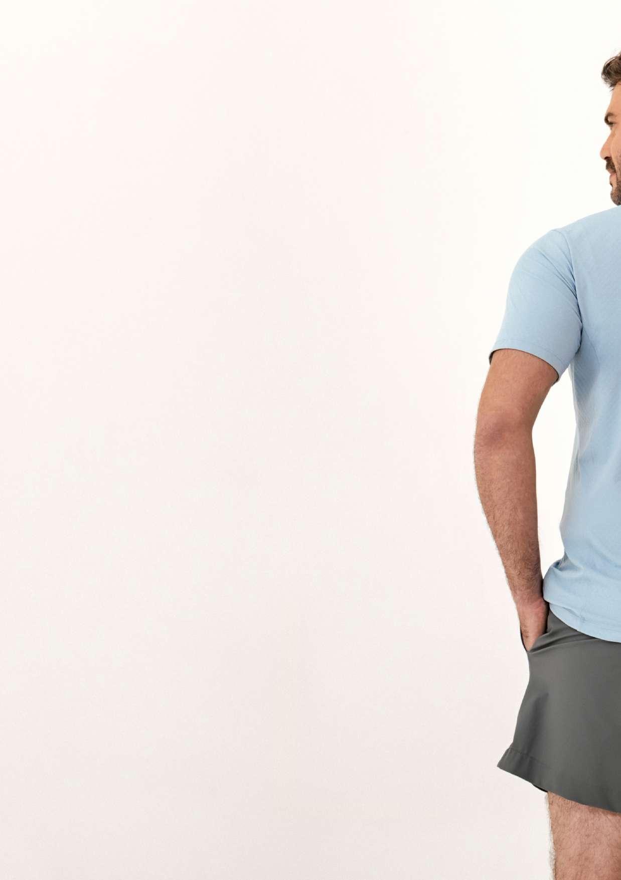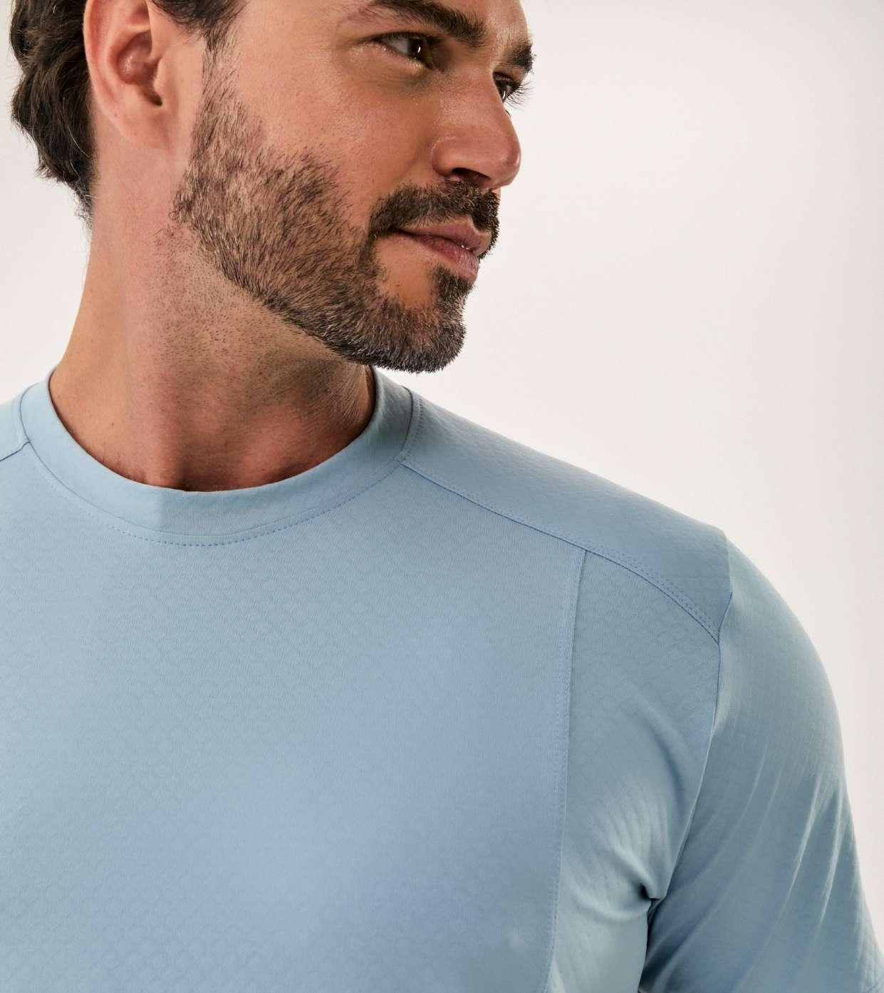 Textura que cria um leve disfarce ótico e reduz a marcação sobre a pele, além de incorporar tecnologias essenciais para peças esportivas e casuais, como Dry e o acabamento Antimicrobiano, que garante a proteção contra o mau cheiro causado pelas bactérias presentes no suor.