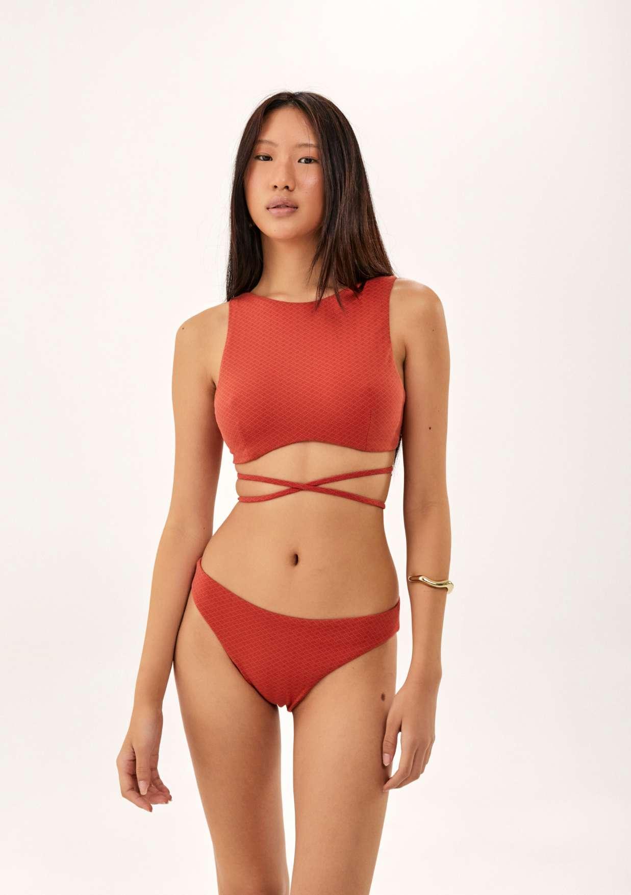 Seguindo a tendência crescente de superfícies rústicas e acabamentos artesanais na moda praia.