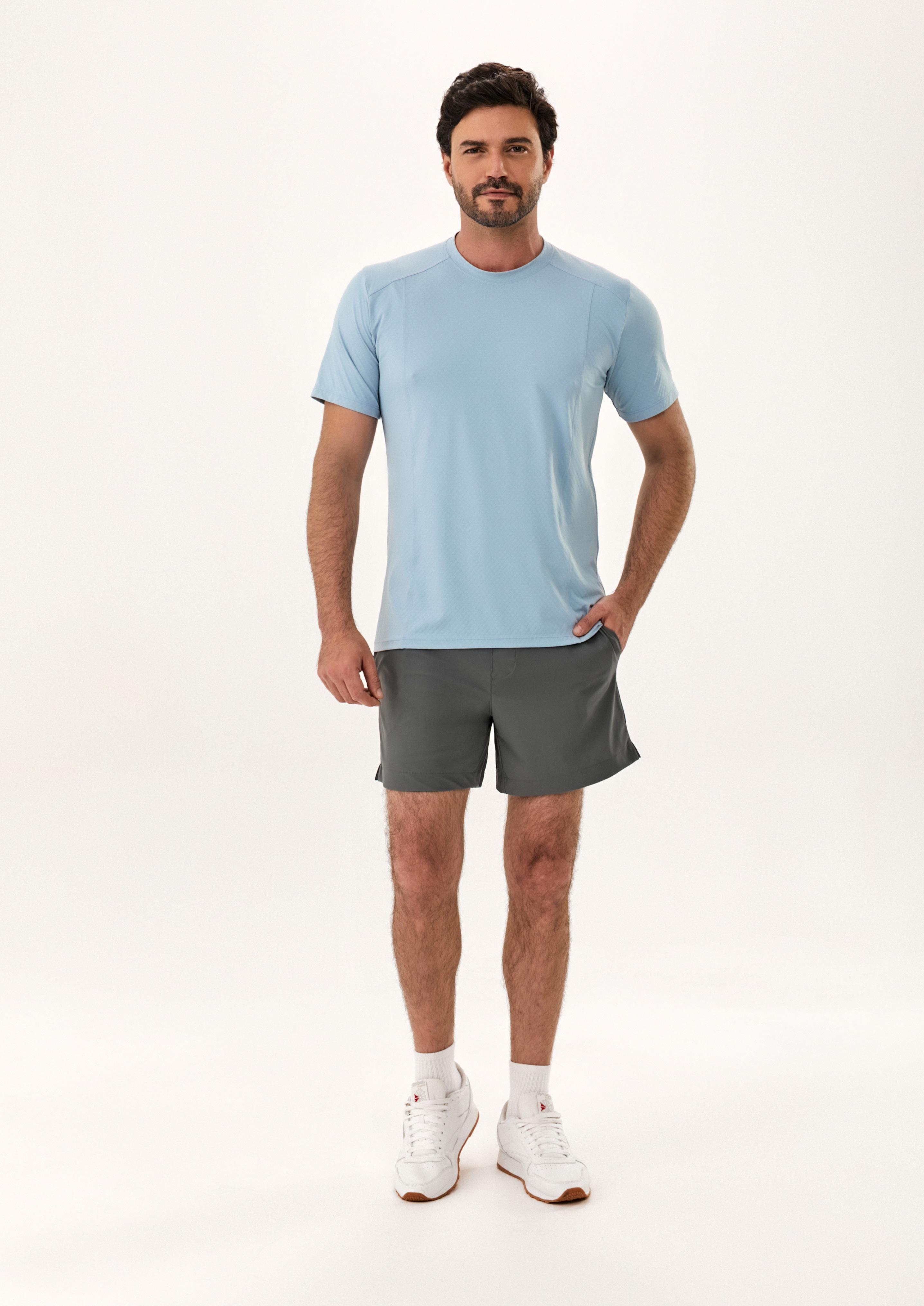Textura que cria um leve disfarce ótico e reduz a marcação sobre a pele, além de incorporar tecnologias essenciais para peças esportivas e casuais, como Dry e o acabamento Antimicrobiano, que garante a proteção contra o mau cheiro causado pelas bactérias presentes no suor.
