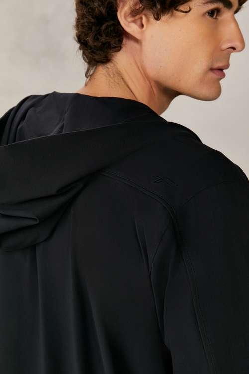Acabamento hidrorepelente que mantém a peça e o usuário secos, protege contra líquidos e manchas, reduzindo lavagens e preservando a durabilidade.