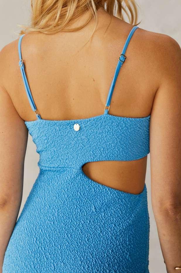 Noronha Digital é uma malha em poliamida com textura artesanal, que remete ao crochê. Seu toque macio e elasticidade, a tornam ideal para beachwear.