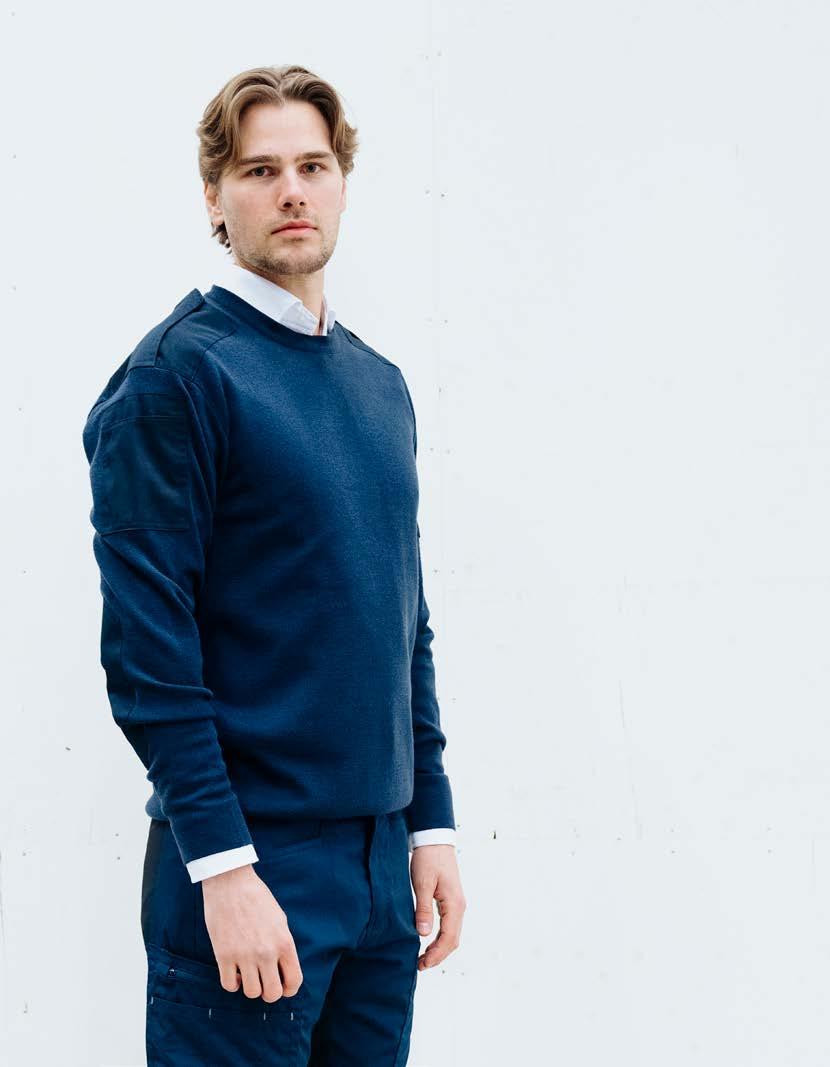 Een technische trui die zijn vorm en warmte behoudt zonder zwaar aan te voelen. Voorgevormde mouwen, handige zakken en discrete reflecterende details zorgen voor een slijtvast alledaags kledingstuk. FJ56, pagina 57.