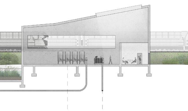This localized water treatment plant filters runoff from the highly polluted rail station before it enters Proctor Creek. The high profile positioning of this treatment center on the Proctor Creek Greenway Loop highlights the extent of the problem and the necessary steps for improvement. The goal is to address pollution, educate the public, and advocate for pollution reform on railways.