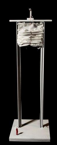 The Gainesville Ceramics Center integrates smocking-inspired design with ceramic arts to create a multi-functional space, including a studio, gallery, performance venue, and library. The project features a textured façade wrapped in an adjustable smocked fabric which obscures an organic vase-like structure that captures water for pottery use. This central form, visible through the transparent façade draws on the vertical smock technique to highlight its aesthetic appeal.