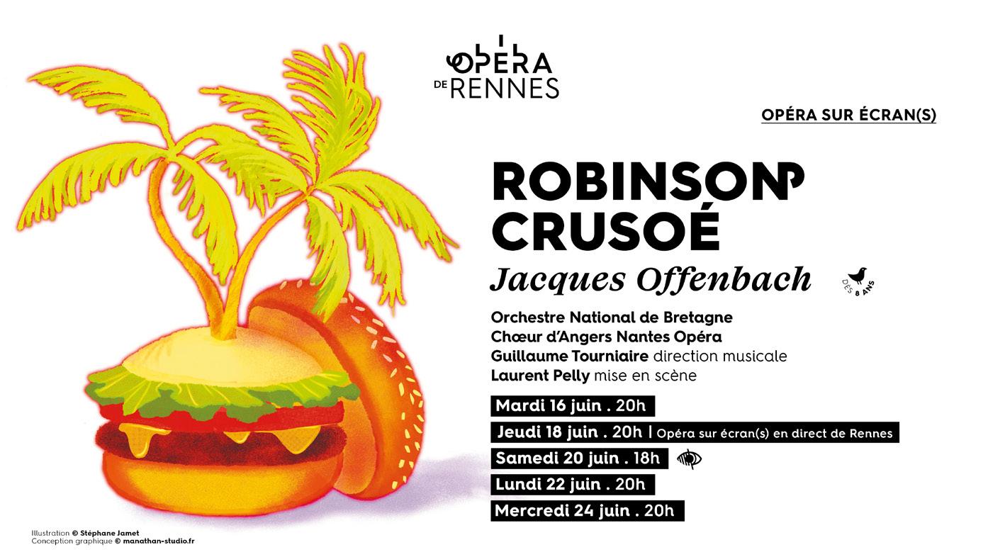 The celebrated story of Robinson Crusoe by Daniel Defoe, the irresistible talent of Jacques Offenbach, and a particularly promising cast… the Opéra de Rennes invites you to an exceptional event to close the season, as part of 2026’s free Opéra sur écrans screening.