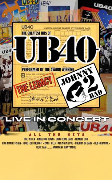 UB40, the Legacy – performed by the internationally acclaimed Johnny2bad recreating the greatest sounds from Birmingham reggae legends UB40.