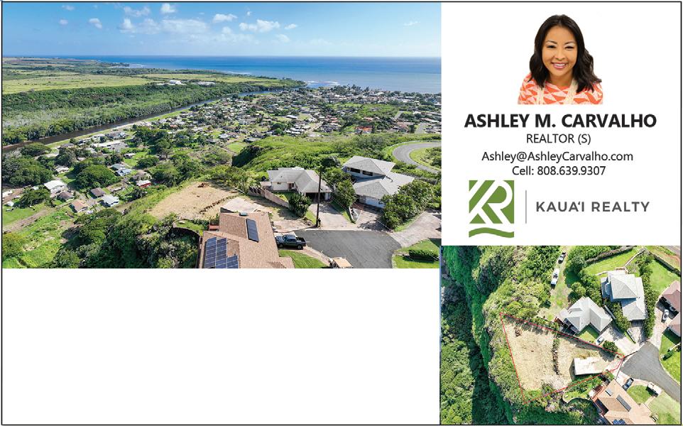 PLACE YOUR AD t ODAY 246-0325 th E g ARDE nis LA n D CO m/ CLA ssifi ED s KAUAI’S real estate directory 246-0325 thegardenisland.com Subscribe today 245-0433 Stay Informed Informed thegardenisland.com FRIDAY December 15, 2017 75¢ Serving Kauai and since 1902 INSIDE TGIFR!DAY REAL ESTATE KIF SOCCER • RED RAIDERS SHUT OUT VOYAGERS---Waysrenters becominghomeowners Poipu SHOWROOM ‘THE GREATEST TIME OF THE YEAR’ 4-1525 Kuhio Hwy. Kapa a, 96746 Islandwide Deliveries M–F 378-4446 OPEN SATURDAYS 7:30-11AM Season’s Greetings from your friends at SEEDS OF CHANGE staffing;Hartung Brothers Inc.to statewide (808) 246-8828 Across From Kauai Community College 4490 Puhi Road, Lihue * Custom Color Matching * Armstrong-Clark Stains * * Purdy Brushes * Graco Sprayers * Home Owner * * Maintenance * Commercial * Industrial * Lihue Commercial Property Lot Size: 15,879 sqft Price: $1,550,000 MLS 703878 Three (3) abutting, contiguous commercial zoned lots totaling 15,879 square feet and improved with various buildings totaling 2,704 square feet and a cellular tower in the heart of Lihue is now available for sale ... the properties included are TMK: 4th 3-6-9: Parcels 024, 025 & 026. A corner lot, the properties are located across Kalena Park and near to the fire station and various businesses and eateries. LIHUE – FAIRVIEW BUSINESS TRACT Kauai-Realty.com 2403 Ulu Maika St., Lihue, HI 96766 Mark Tanaka RB (808) 639-0367 • mark@marktanaka.com Clifton A. Kukino RB (808) 639-1490 • ckukino@kauairealty.net APY=Annual Percentage Yield. Rates are effective 6/21/23 and subject to change. $1,000 minimum deposit and minimum balance required for entire term. Early termination fee may be imposed. Additional rates are available contact the credit union for more information. Federally insured by NCUA. Earn More Interest On Your Savings HANAMAULU AROL C. CUMMINGS RB-14915 (RB) CRB, CRS, GRI, SFR 808-651-4766 kauairealty@gmail.com www.carolcummingskauai.com PRICE SLASHED! Land Area: 6,100 sf Living Area: 1,379 sf Bed/Bath: 5/2 New Price: $699,000 MLS 703372 Sell Your House, Condo or Land on Kauai the Simple Way You Pay NO Realtor Commissions or Fees! We Pay ALL CLOSING COSTS! • We Buy In “AS IS CONDITION” • No Need For Repairs • Close When You Want • No More Uncertainty • No Showing Your Home Over and Over • We are flexible for YOU • We Are Local Cash Buyers www.KauaiCashHomeBuyers.com WE ALWAYS PAY CASH Call us FIRST at 808-746-2418 SOLD 808-822-3100 www.kauailandmark.com Larry Fudge RB-18519 808-635-1111 Diane A. Pavao RS-58020 808-651-3557 2,400 sq.ft house on One Acre in Wailua Homesteads COMINGSOON! www.thegardenisland.com THE GARDEN ISLANDFriday, September 01, 2023 Page 5