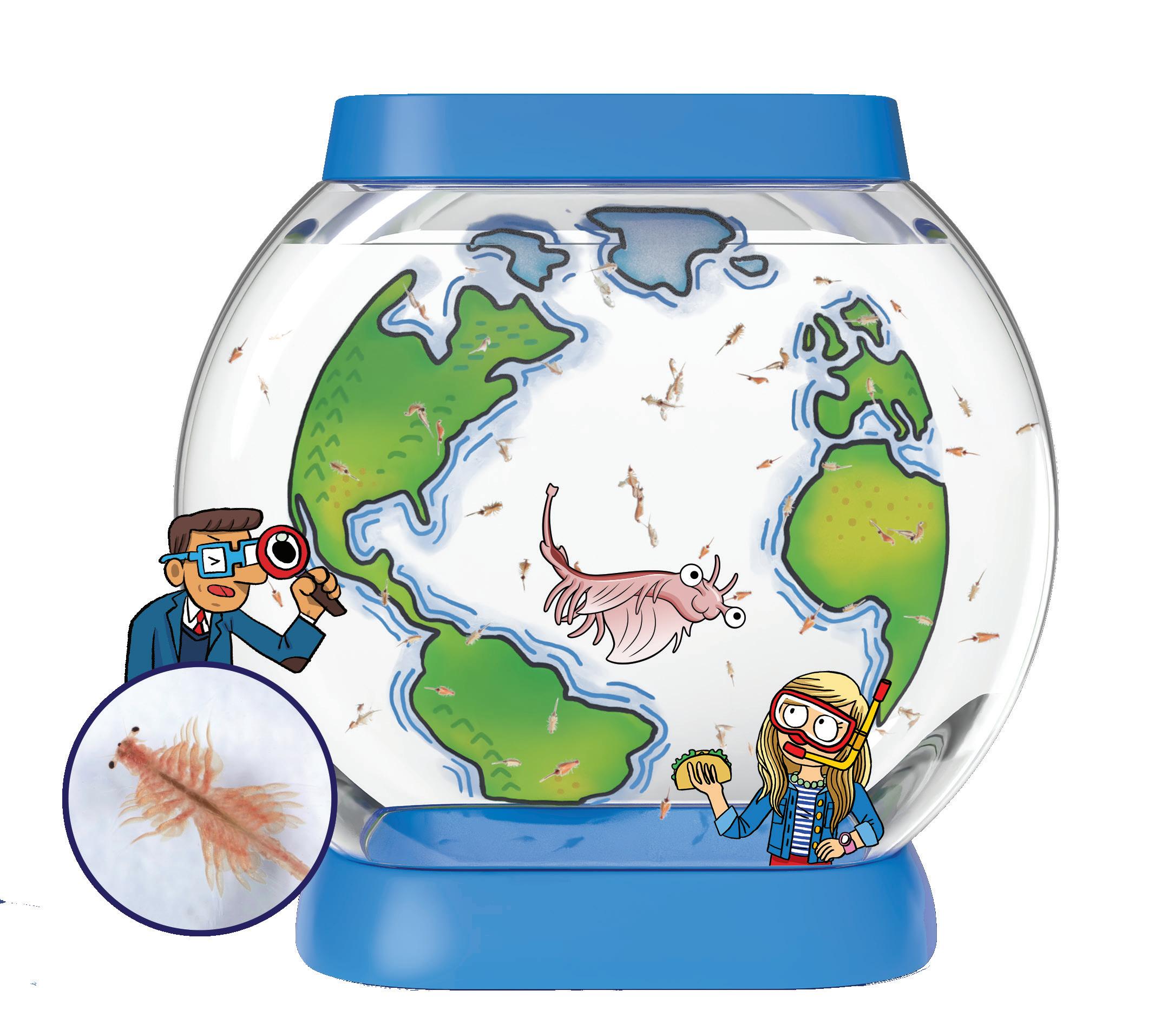 Set up an aquarium for your own living sea creature pets! Prepare the salt water and then watch as small brine shrimp hatch from the included eggs, swim around, feed on the included food, and slowly grow larger. A fun, eight-page, full-color guide first explains how to set up the aquarium and hatch and care for the shrimp, as well as offers scientific info about these fascinating creatures and the ecosystems in our planet’s oceans. When properly cared for, the brine shrimp can live for months and even years, and the durable habitat tank can be used for bugs and other things afterward.