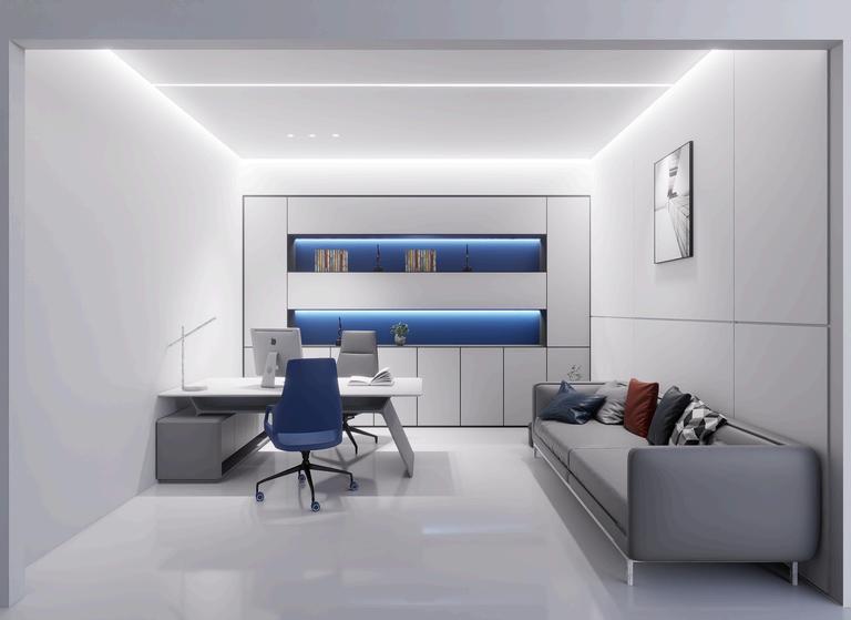 This design captures Trip.com’s clean, modern identity. Blue-white tones and soft linear lighting create a calm, techforward atmosphere. The layout flows naturally from open areas to private workspaces, making the office easy, comfortable, and enjoyable to use.