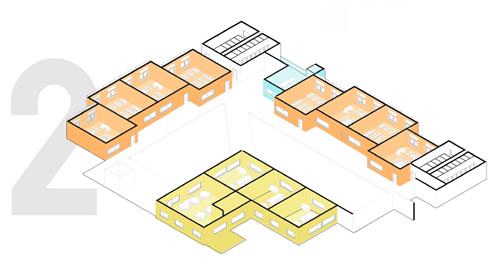 Courtyards between these zones bring in fresh air, day light and break the sense of enclosure in the school
