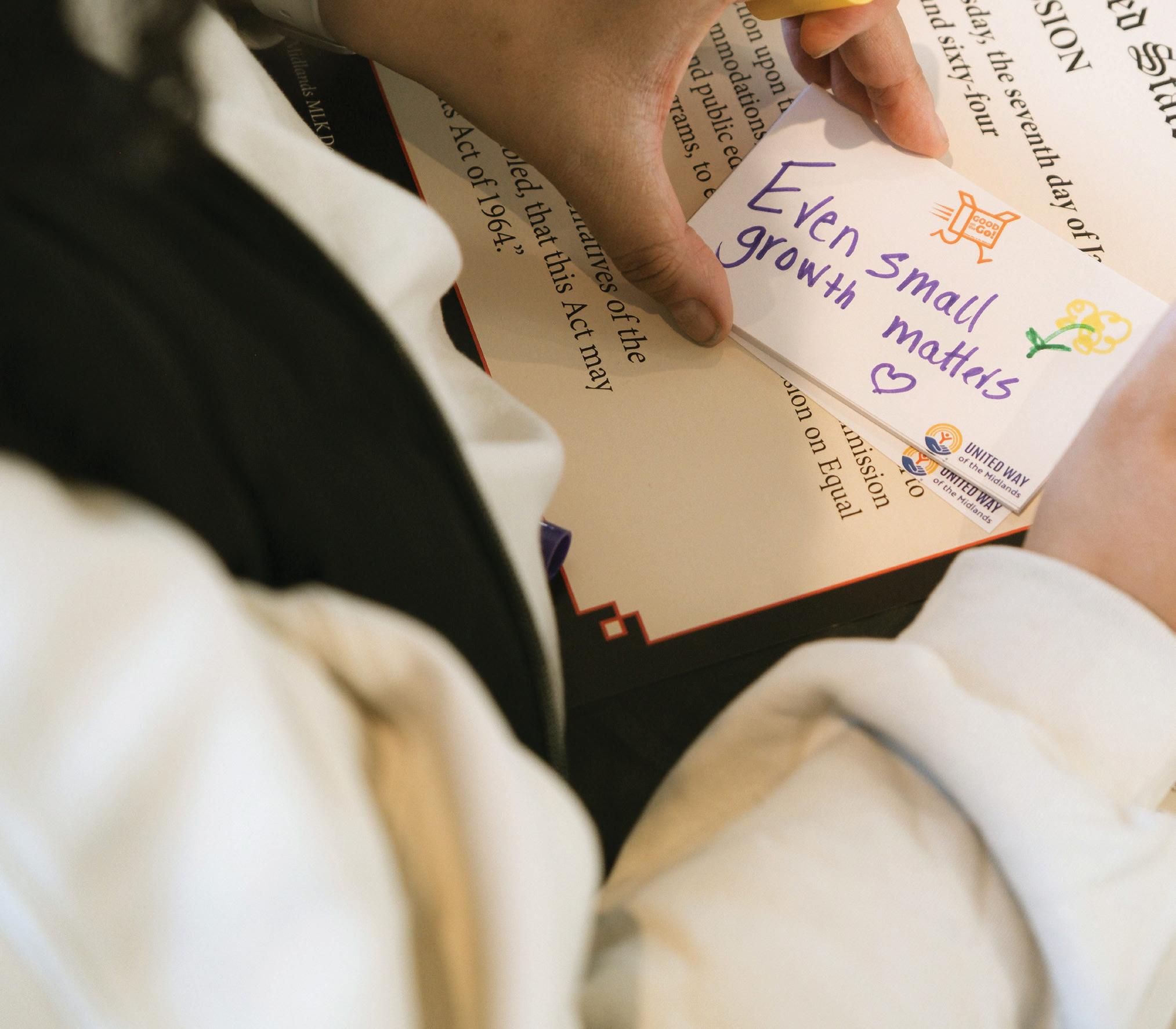 BeingpartofVolunteersUnitedallows metosupporttheimportantworkof UnitedWayoftheMidlandsandjoin othersindoinggoodacrossthemetro.