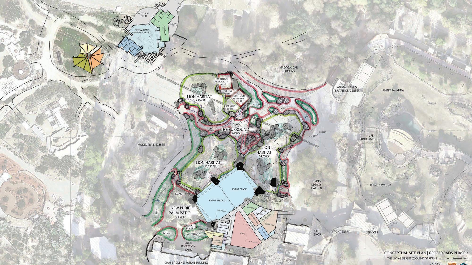 This ambitious phase is more than an expansion—it is a transformative step in our mission to save desert species, inspire environmental stewardship, and provide a world-class guest experience. At its heart is Lion Ridge, an immersive, multi-acre habitat that will serve as home to a pride of African lions—an iconic and vulnerable species whose populations in the wild have declined by over 40% in the past 25 years. Their survival depends on awareness and support for global conservation e orts. Alongside this striking habitat will rise the Connie and Bob Lurie Event Center—a 500-seat, multi-use facility with a dramatic 180-degree glass wall o ering panoramic views directly into the lion habitat. This dynamic venue will be a game-changer for The Living Desert and the entire Coachella Valley. It will host conservation lectures, educational programs, private celebrations, cultural events, and community gatherings year-round.