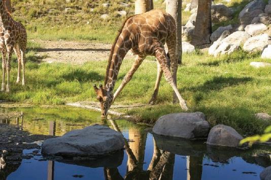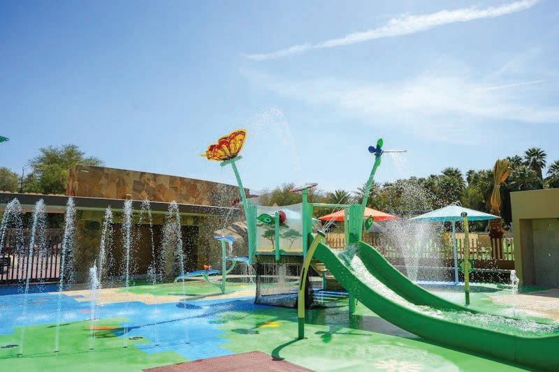 The Oasis Splash Pad is a vibrant, desert-themed water play area designed to delight visitors of all ages. Featuring interactive elements inspired by the desert landscape, the splash pad not only o ers refreshing fun but also serves as an educational experience. The facility operates using a recirculated, treated water system that uses less water annually than a typical single-family home—underscoring The Living Desert’s commitment to sustainability. While children revel in the playful environment, parents and caregivers can appreciate the powerful message about protecting our planet’s most precious resource.